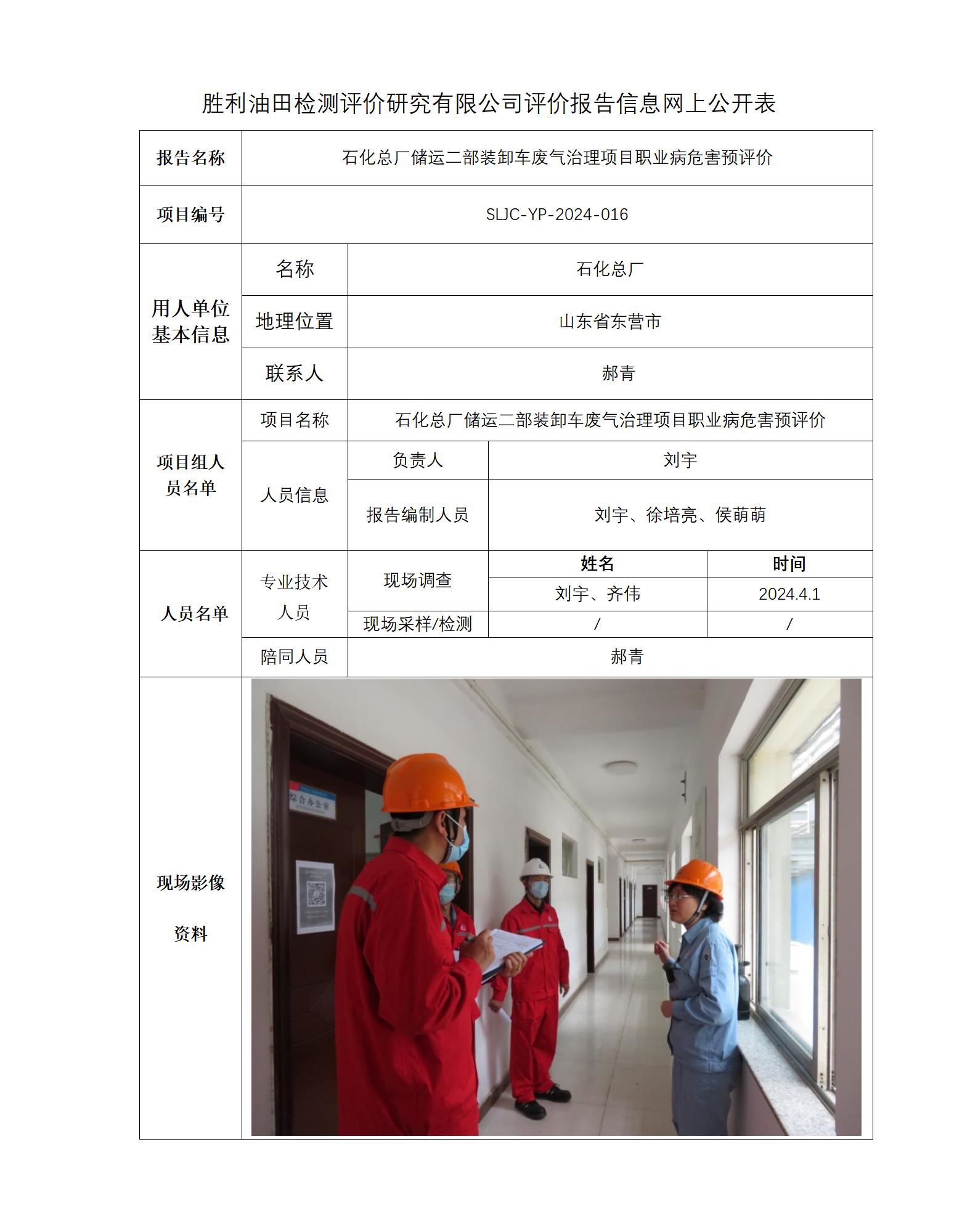 石化总厂储运二部装卸车废气治理项目职业病危害预评价