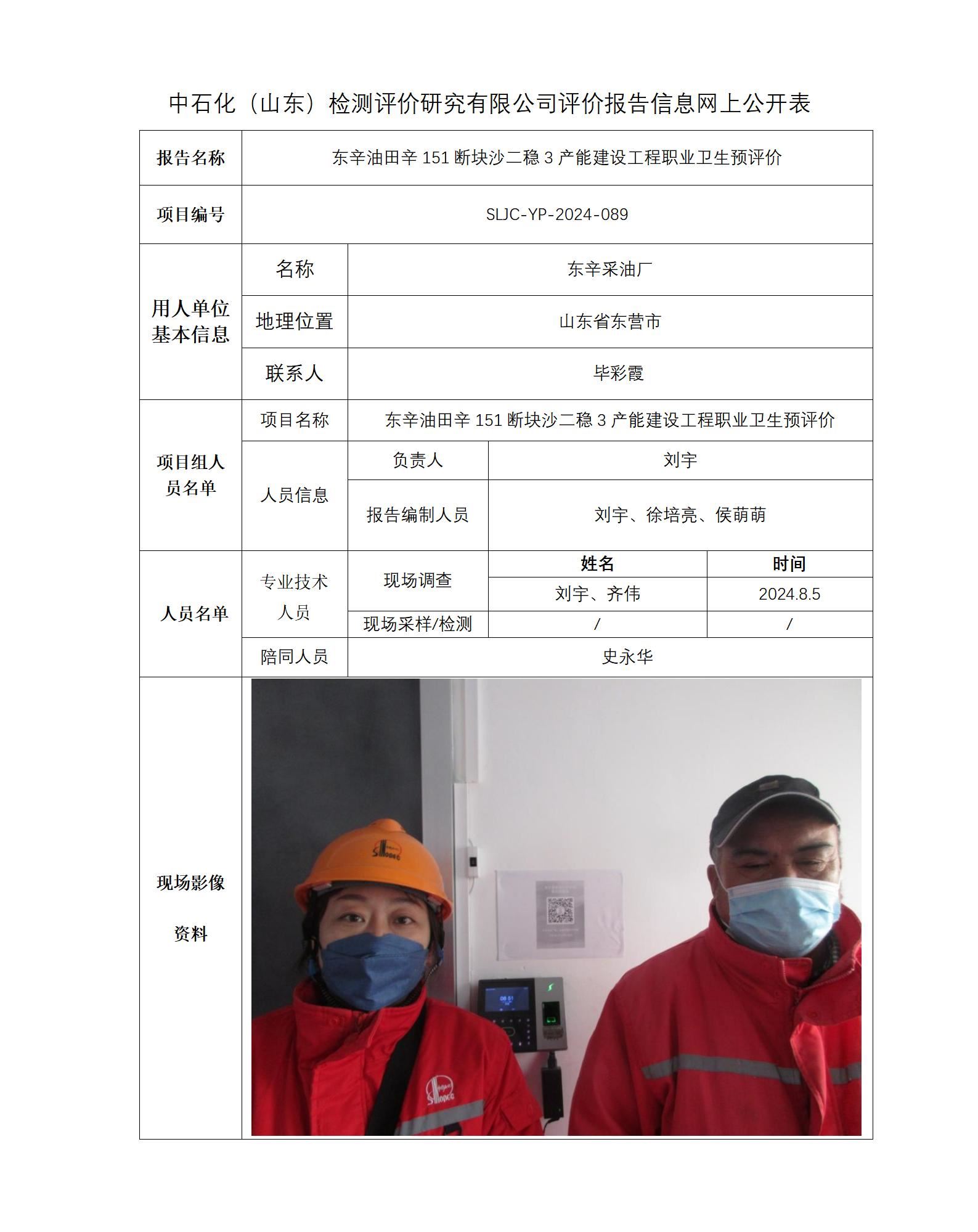 东辛油田辛151断块沙二稳3产能建设工程职业卫生预评价