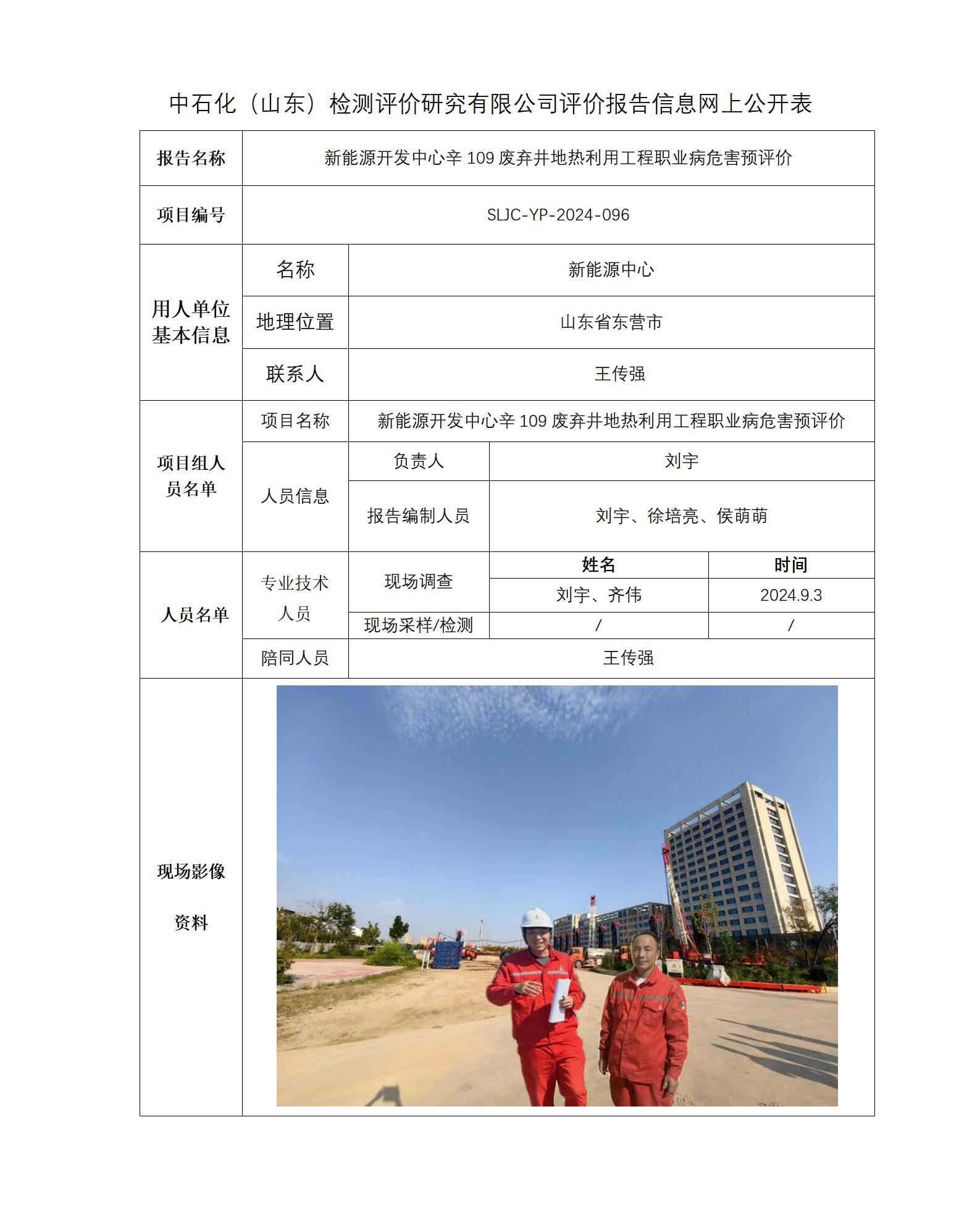 新能源开发中心辛109废弃井地热利用工程职业病危害预评价