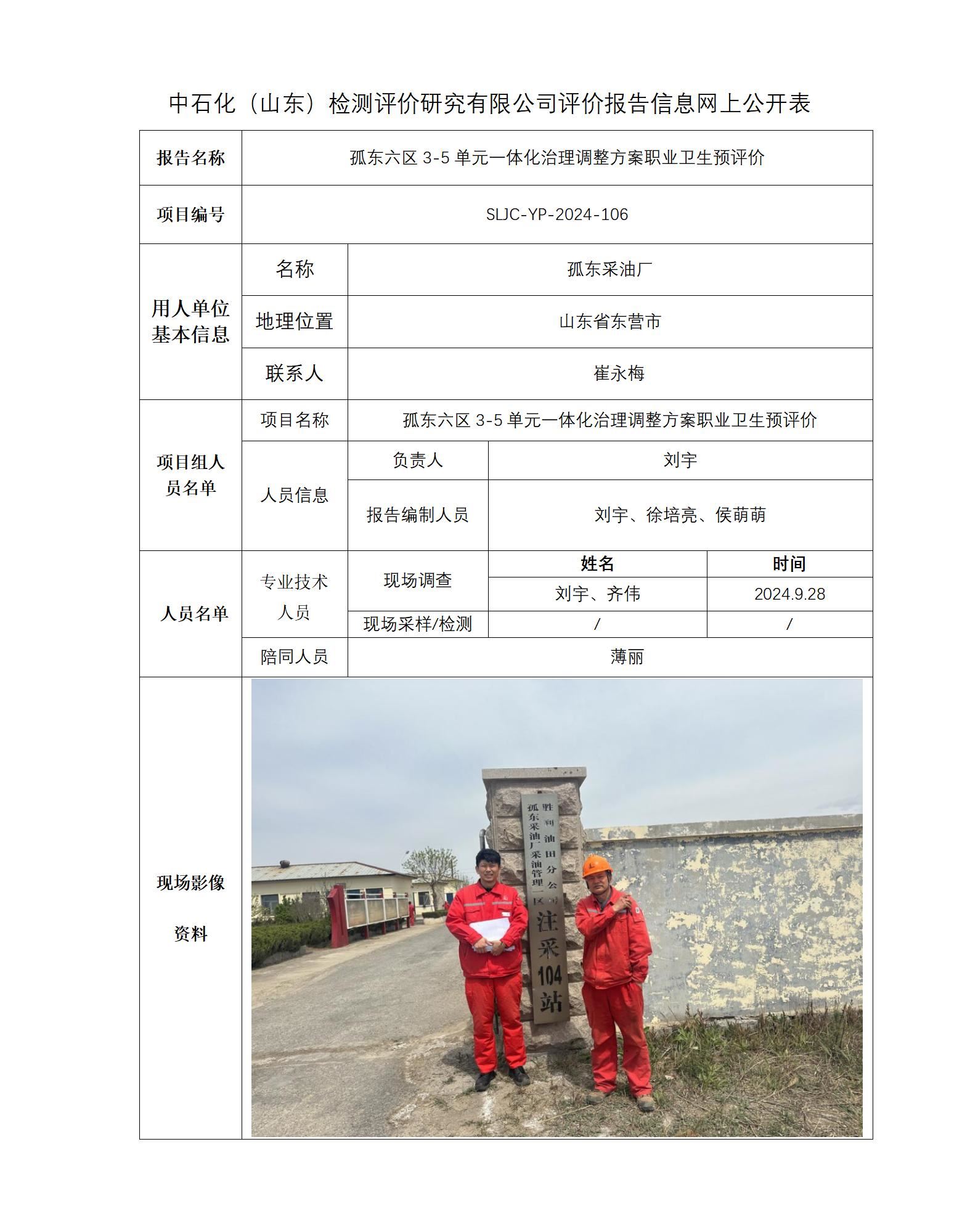 孤东六区3-5单元一体化治理调整方案职业卫生预评价