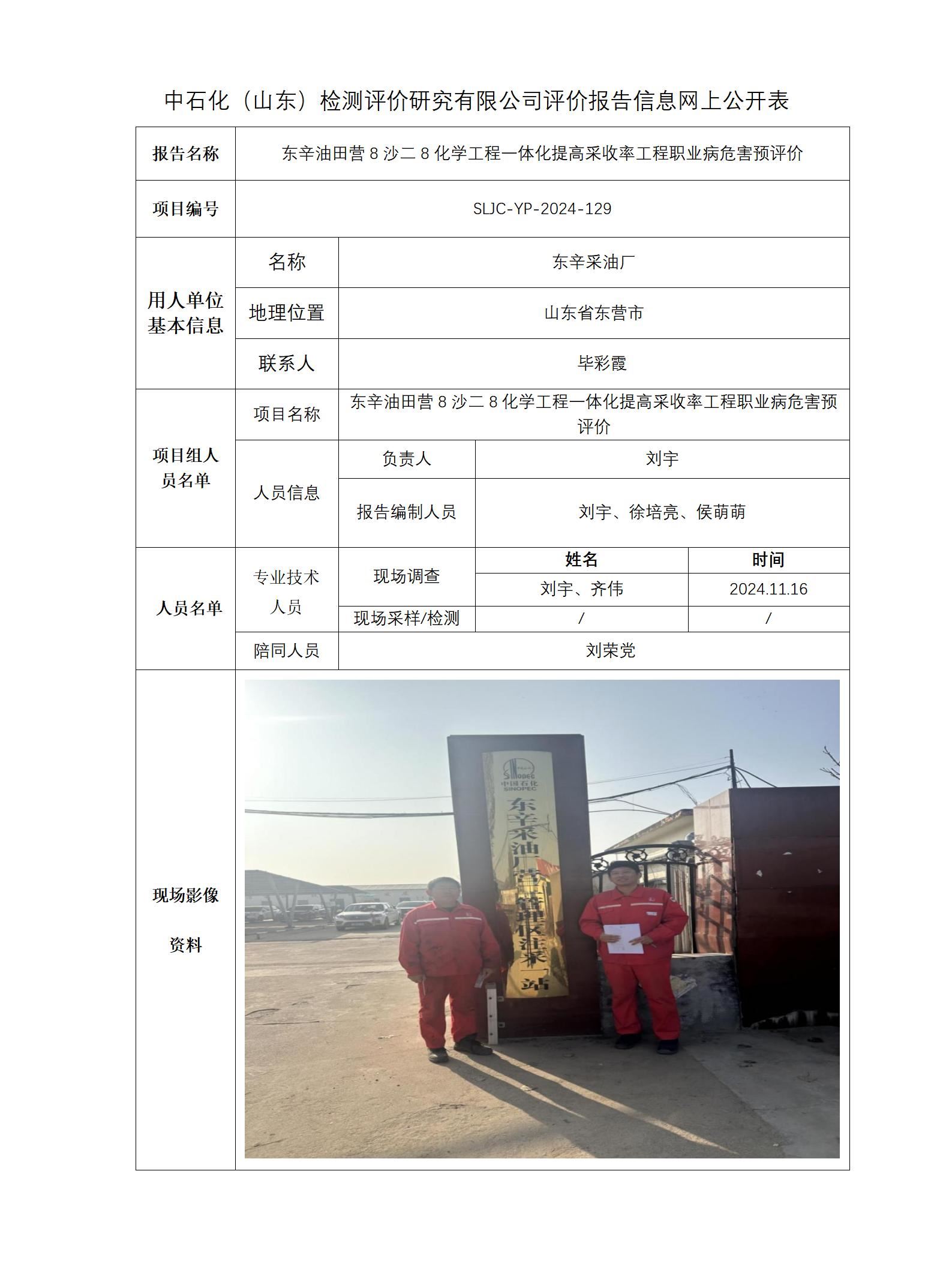 东辛油田营8沙二8化学工程一体化提高采收率工程职业病危害预评价