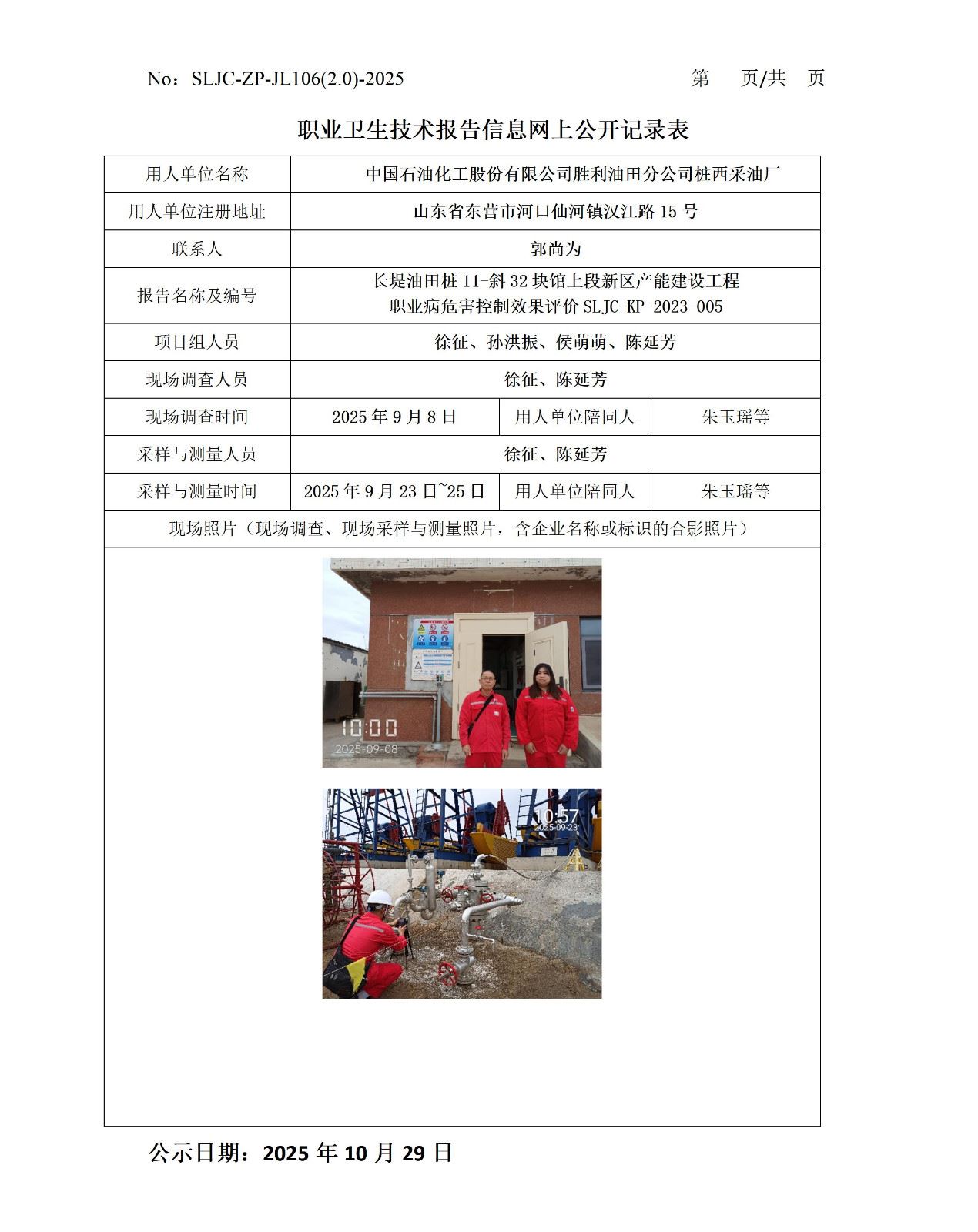 长堤油田桩11-斜32块馆上段新区产能建设工程 职业病危害控制效果评价SLJC-KP-2023-005