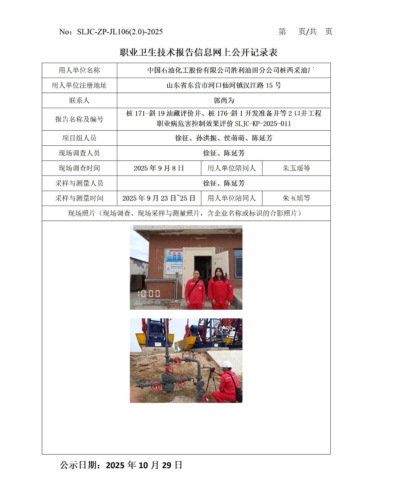 桩171-斜19油藏评价井、桩176-斜1开发准备井等2口井工程 职业病危害控制效果评价SLJC-KP-2025-011