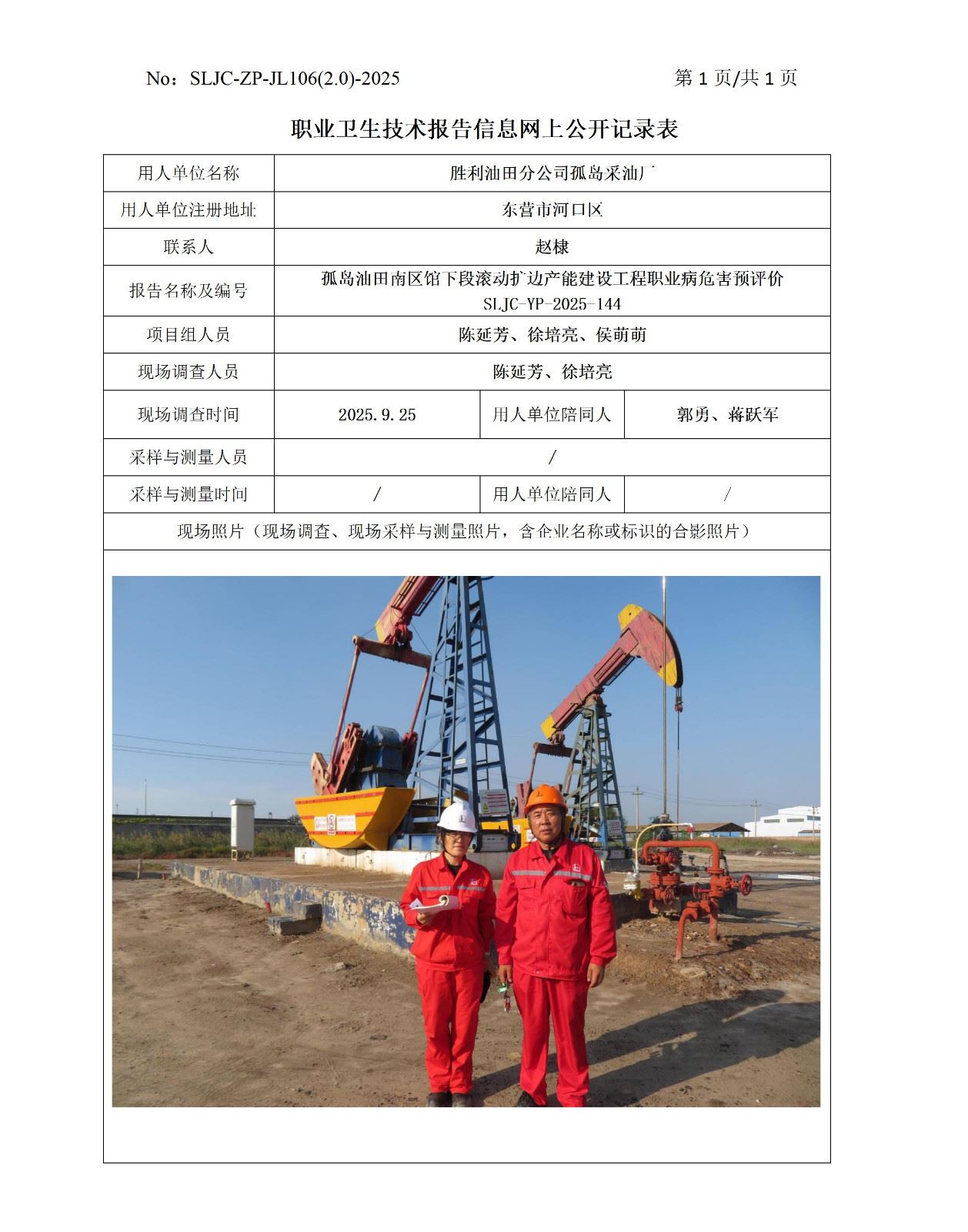孤岛油田南区馆下段滚动扩边产能建设工程职业病危害预评价SLJC-YP-2025-144