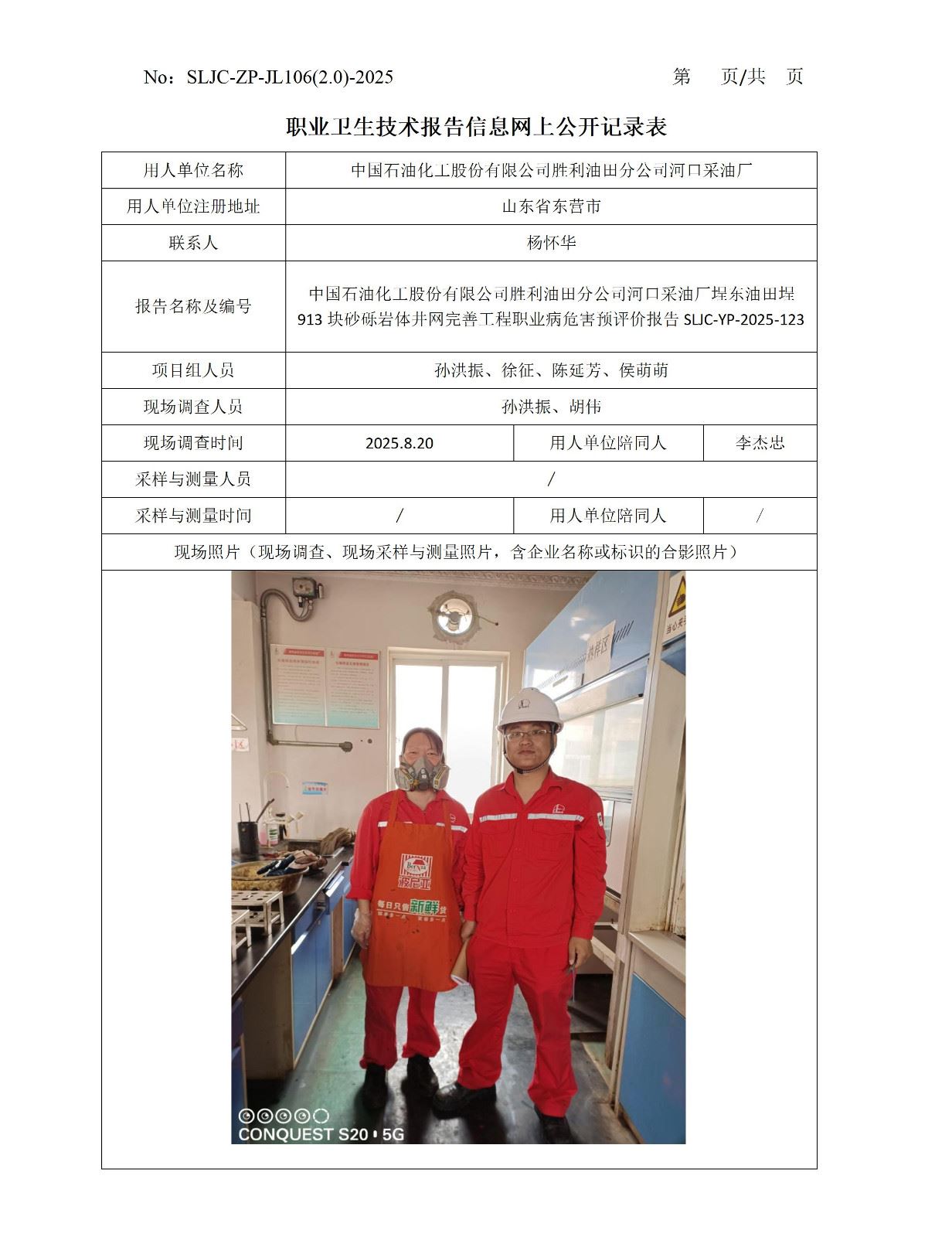 中国石油化工股份有限公司胜利油田分公司河口采油厂埕东油田埕913块砂砾岩体井网完善工程职业病危害预评价报告SLJC-YP-2025-123