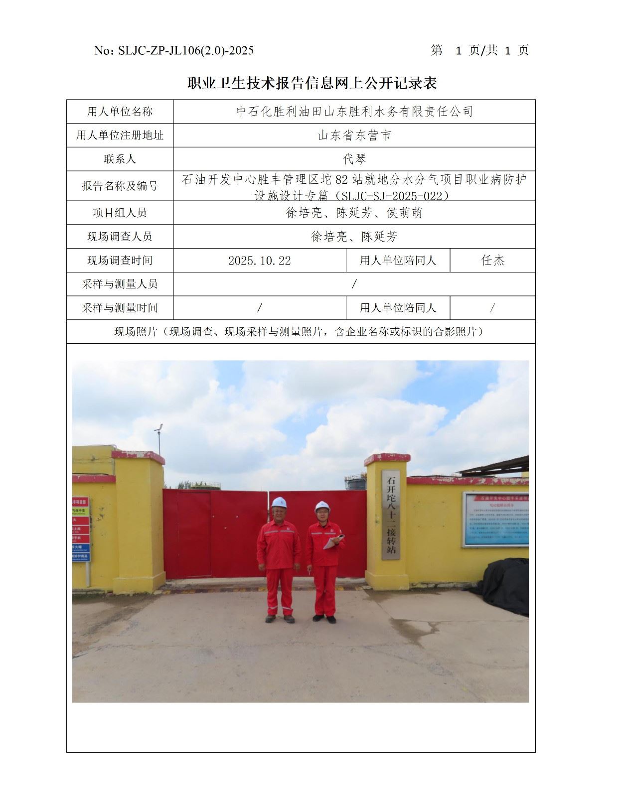 石油开发中心胜丰管理区坨82站就地分水分气项目职业病防护设施设计专篇(SLJC-SJ-2025-022)