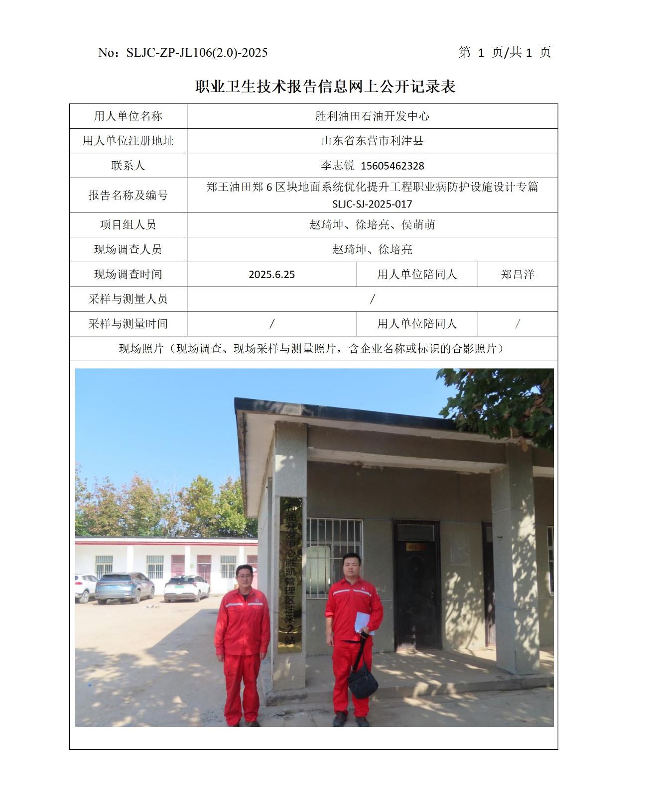 郑王油田郑6区块地面系统优化提升工程职业病防护设施设计专篇SLJC-SJ-2025-017