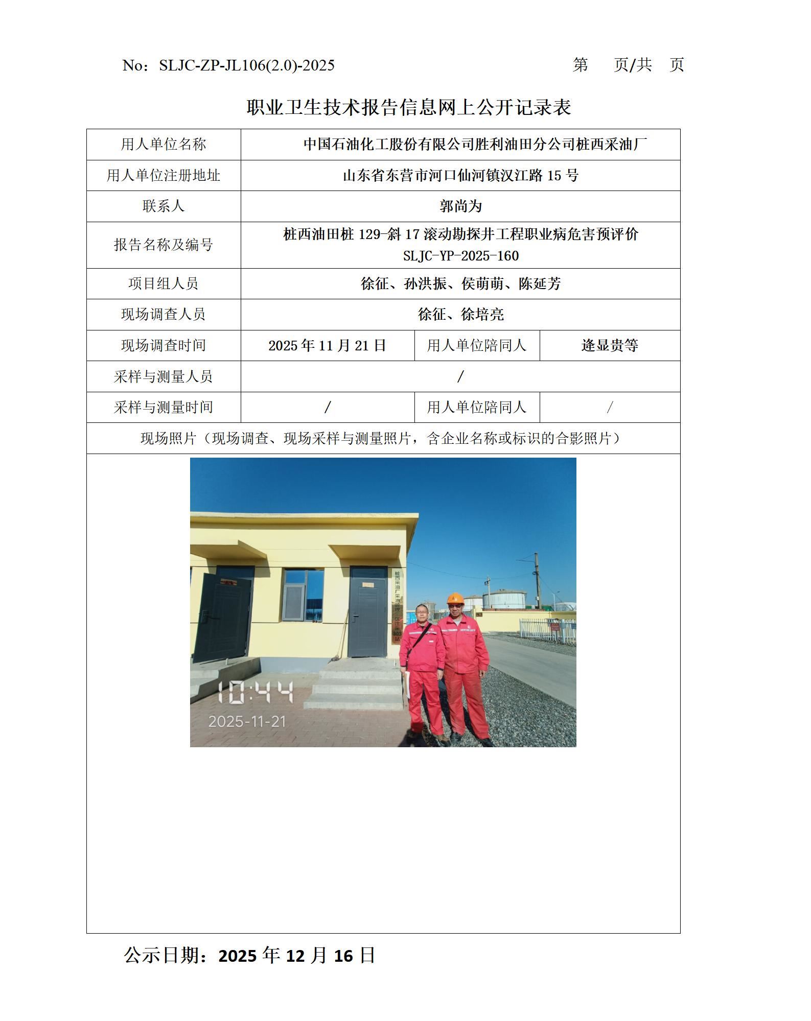 桩西油田桩129-斜17滚动勘探井工程职业病危害预评价 SLJC-YP-2025-160