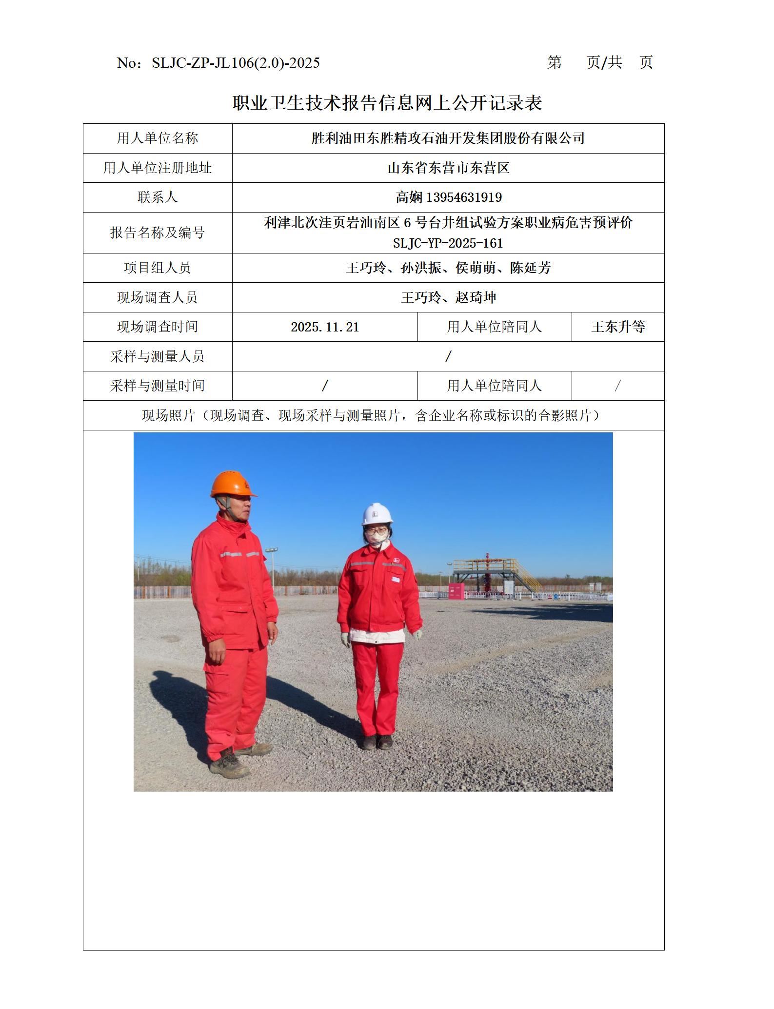利津北次洼页岩油南区6号台井组试验方案职业病危害预评价SLJC-YP-2025-161