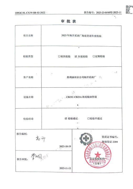 2023年海洋采油厂海底管道年度检验