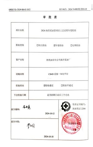 受检(委托)单位 | 胜利油田分公司海洋采油厂海四采油管理区 |