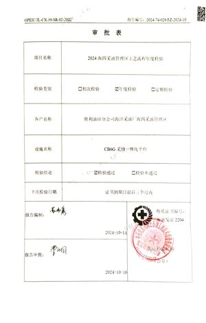 报告名称 | 2024海四采油管理区工艺流程年度检验(CB6G采修一体化平台) |