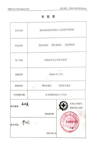 报告名称 | 2024海四采油管理区工艺流程年度检验(CB246井口平台) |