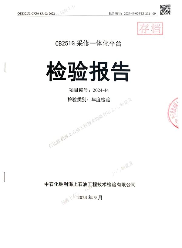 报告名称 | 2024海二采油管理区工艺流程年度检验(CB251G采修一体化平台) |