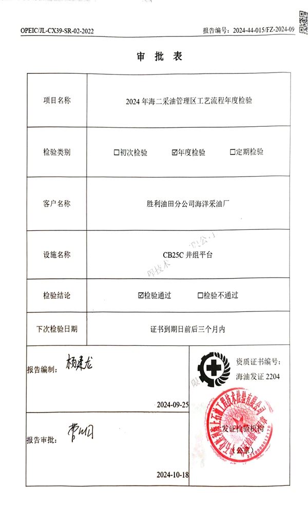 2024海二采油管理区工艺流程年度检验(CB25C井组平台)