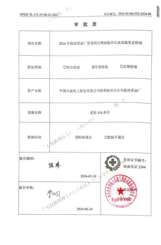 老斜454井台检验报告