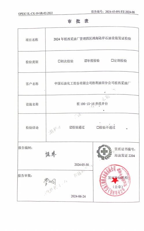 2024年桩西采油厂管理四区滩海陆岸石油设施发证检验