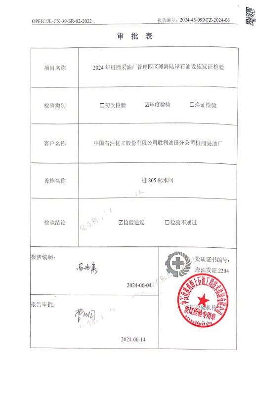 2024年桩西采油厂管理四区滩海陆岸石油设施发证检验