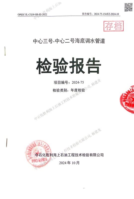 中心三号-中心二号海底调水管道检验报告