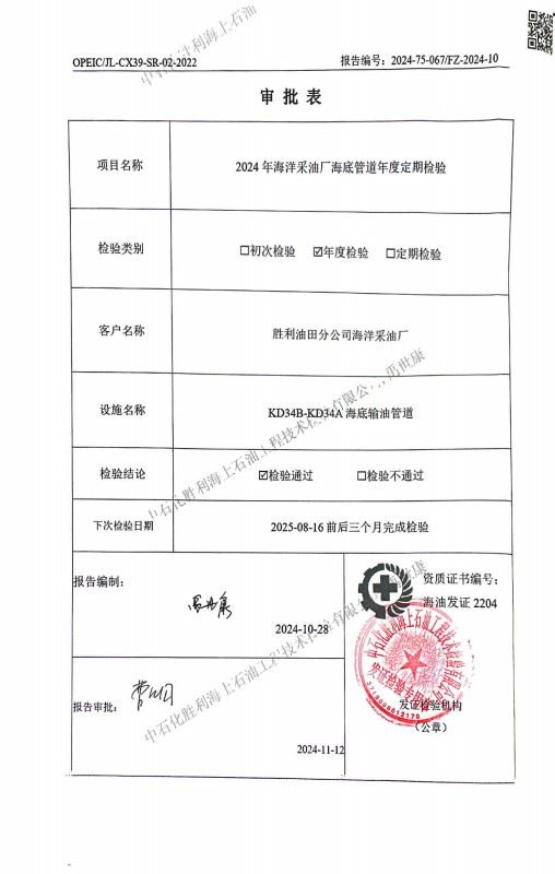 KD34B-KD34A海底输油管道检验报告