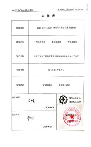 报告名称 | 2024年河口采油厂滩海陆岸石油设施发证检验(埕126-8-6井组井台) |
