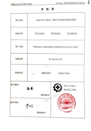 报告名称 | 2024年河口采油厂滩海陆岸石油设施发证检验(埕126-3-91井台) |
