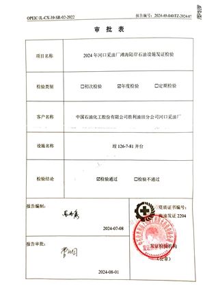 报告名称 | 2024年河口采油厂滩海陆岸石油设施发证检验(埕126-7-81井台) |