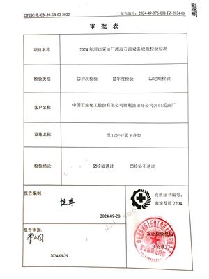 检测检验单位 | 中石化胜利海上石油工程技术检验有限公司 |