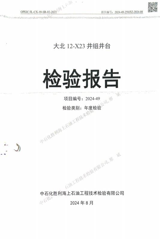 2024年河口采油厂滩海陆岸石油设施发证检验(大北12-X23井组井台检验报告)