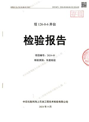 报告名称 | 2024年河口采油厂滩海陆岸石油设施发证检验(埕126-0-6井台) |
