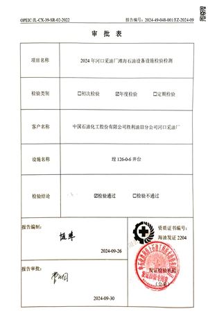 检测检验单位 | 中石化胜利海上石油工程技术检验有限公司 |