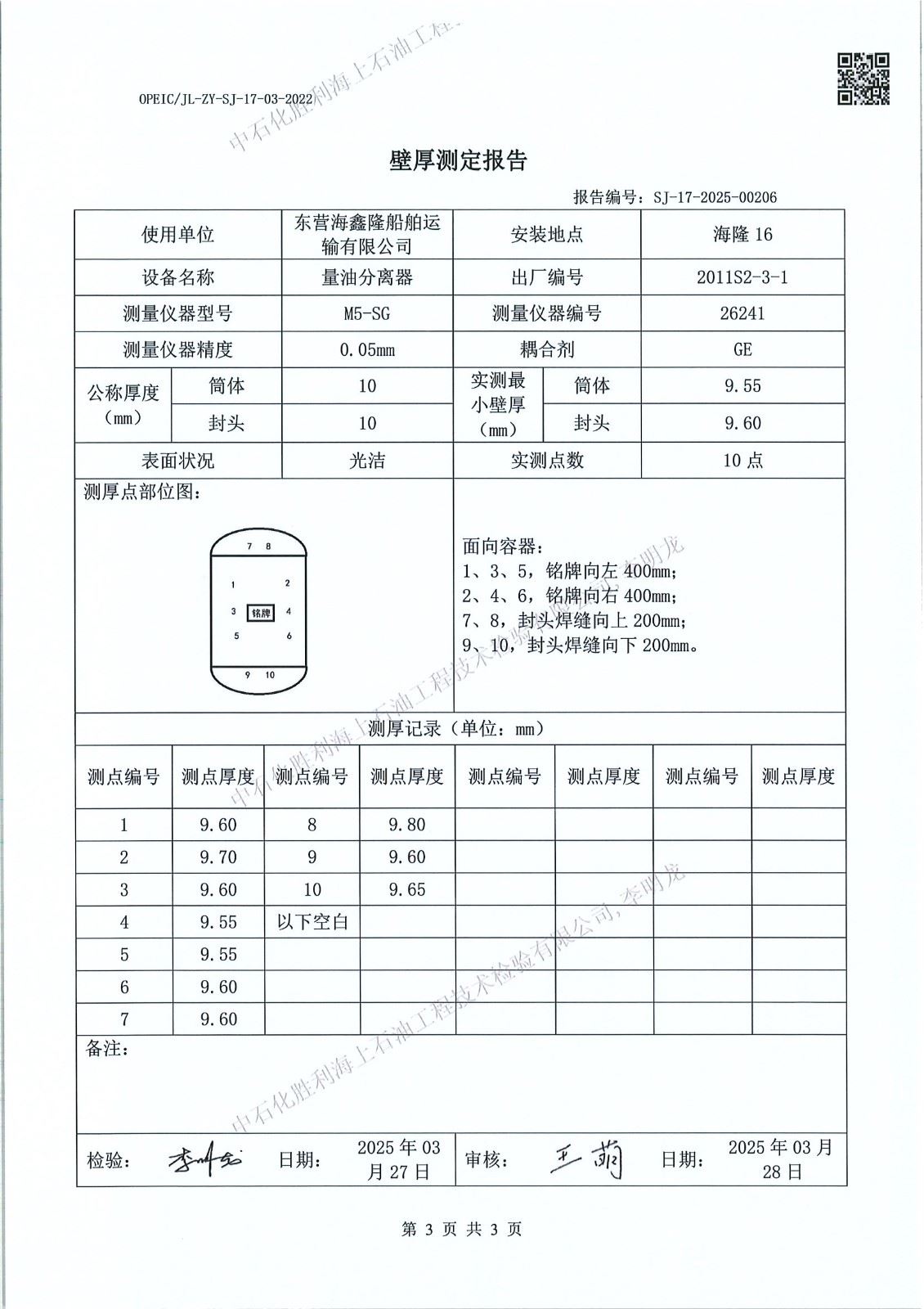 1、使用单位:东营海鑫隆船舶运输有限公司