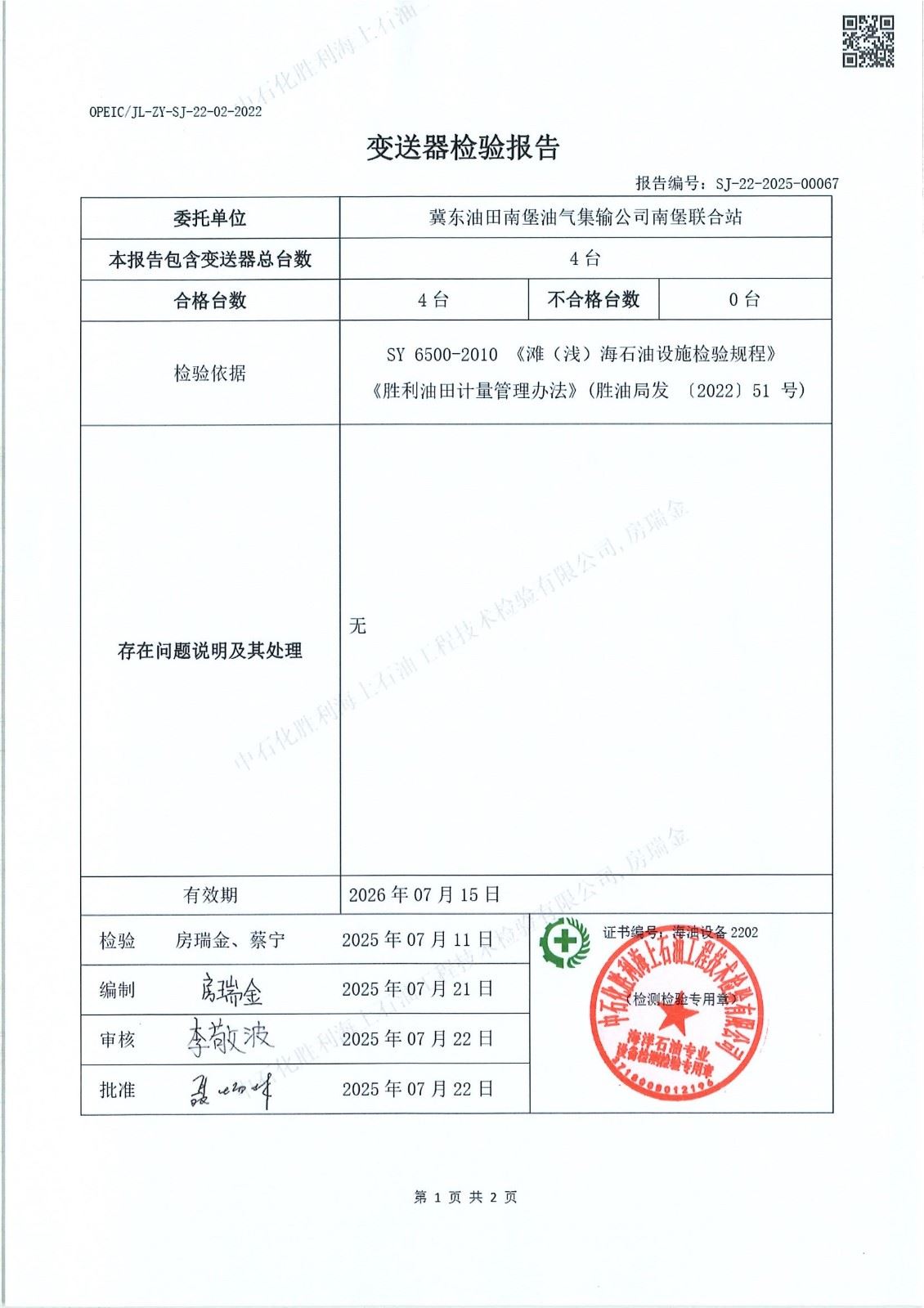 1、使用单位:冀东油田南堡油气集输公司南堡联合站