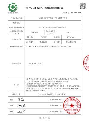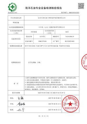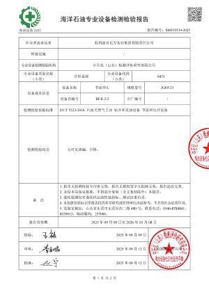 报告名称 | 油气井下作业中心桩西作业区、东营大明石油工程科技开发有限责任公司、胜利油田新大通石油技术有限责任公司、胜利油田北方实业集团有限责任公司的液压双闸板防喷器、节流压井管汇的检测 | |