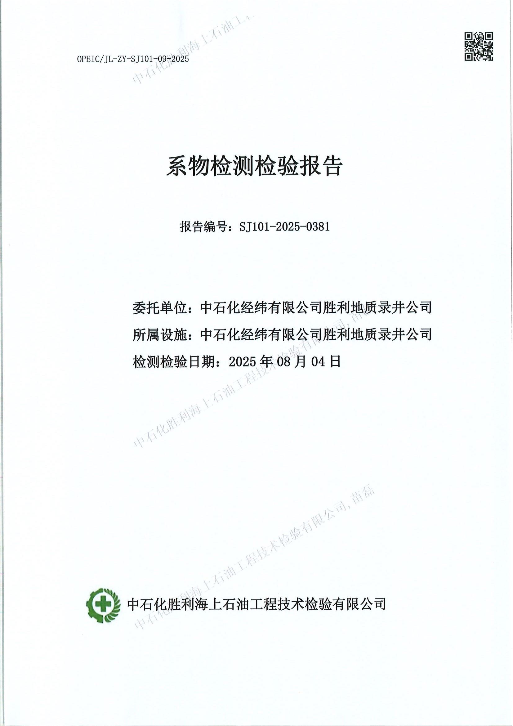 1、使用单位:中石化经纬有限公司胜利地质录井公司