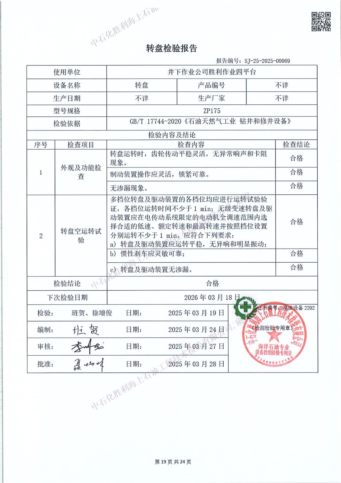 4、检验日期:2025年03月19日