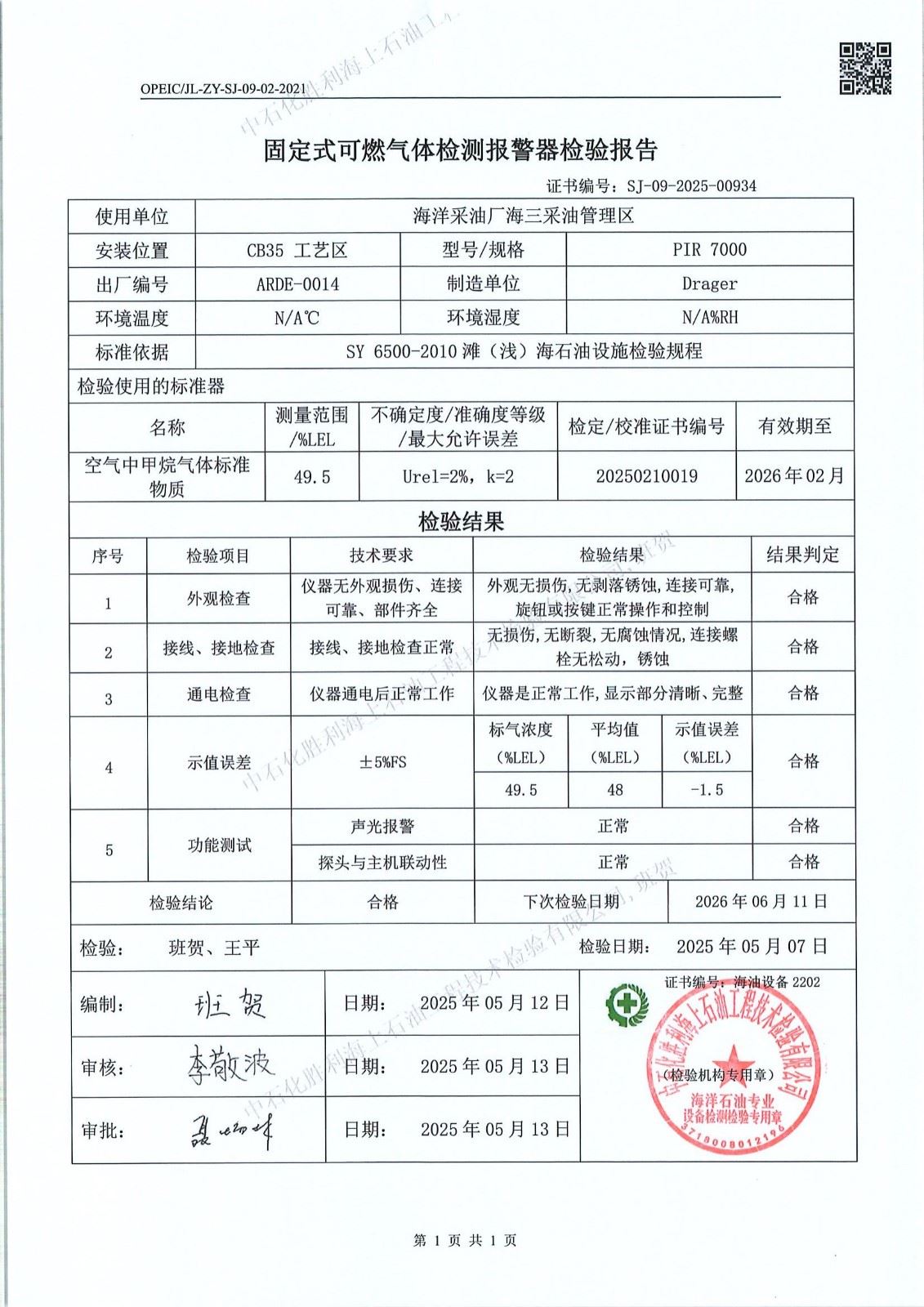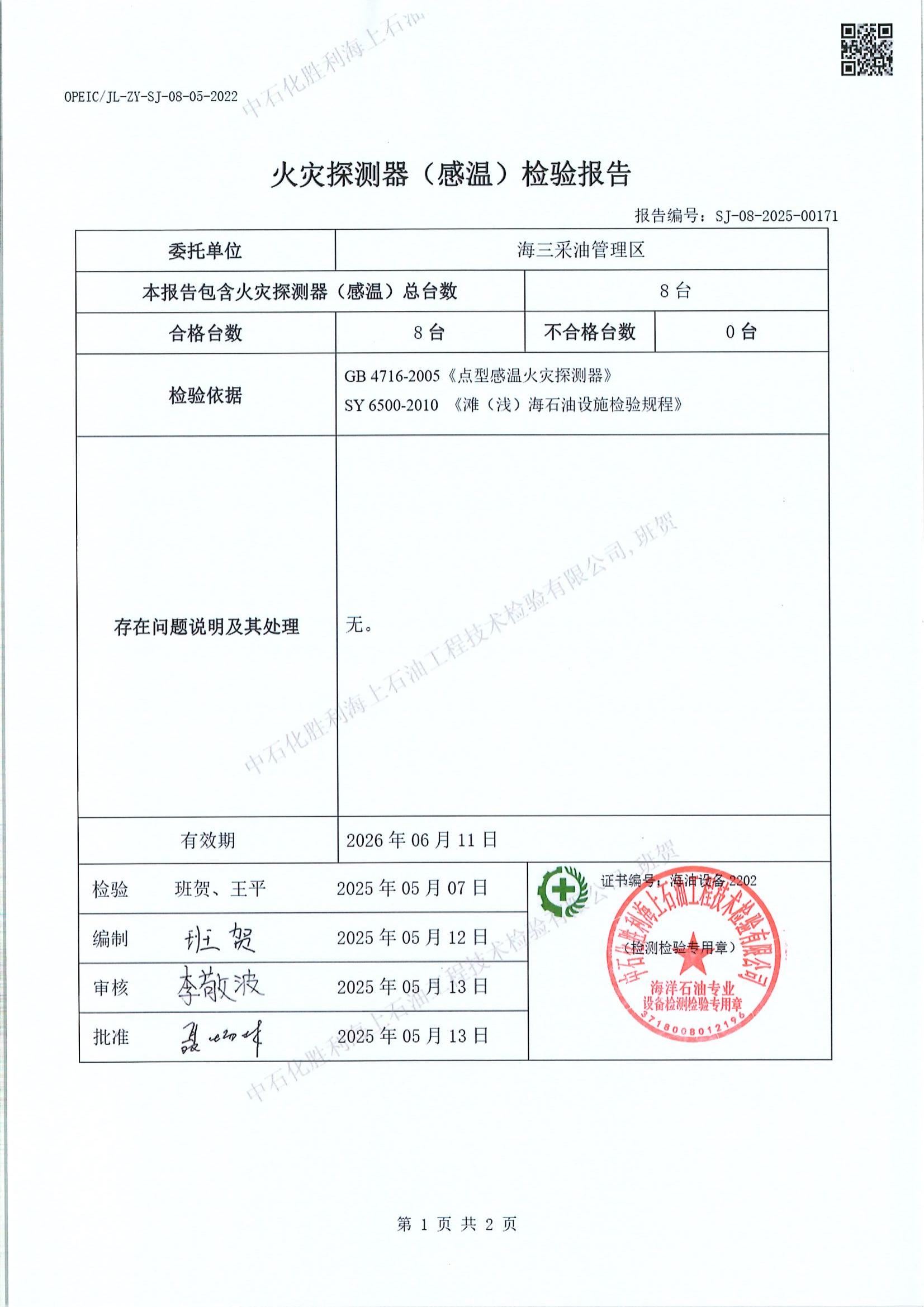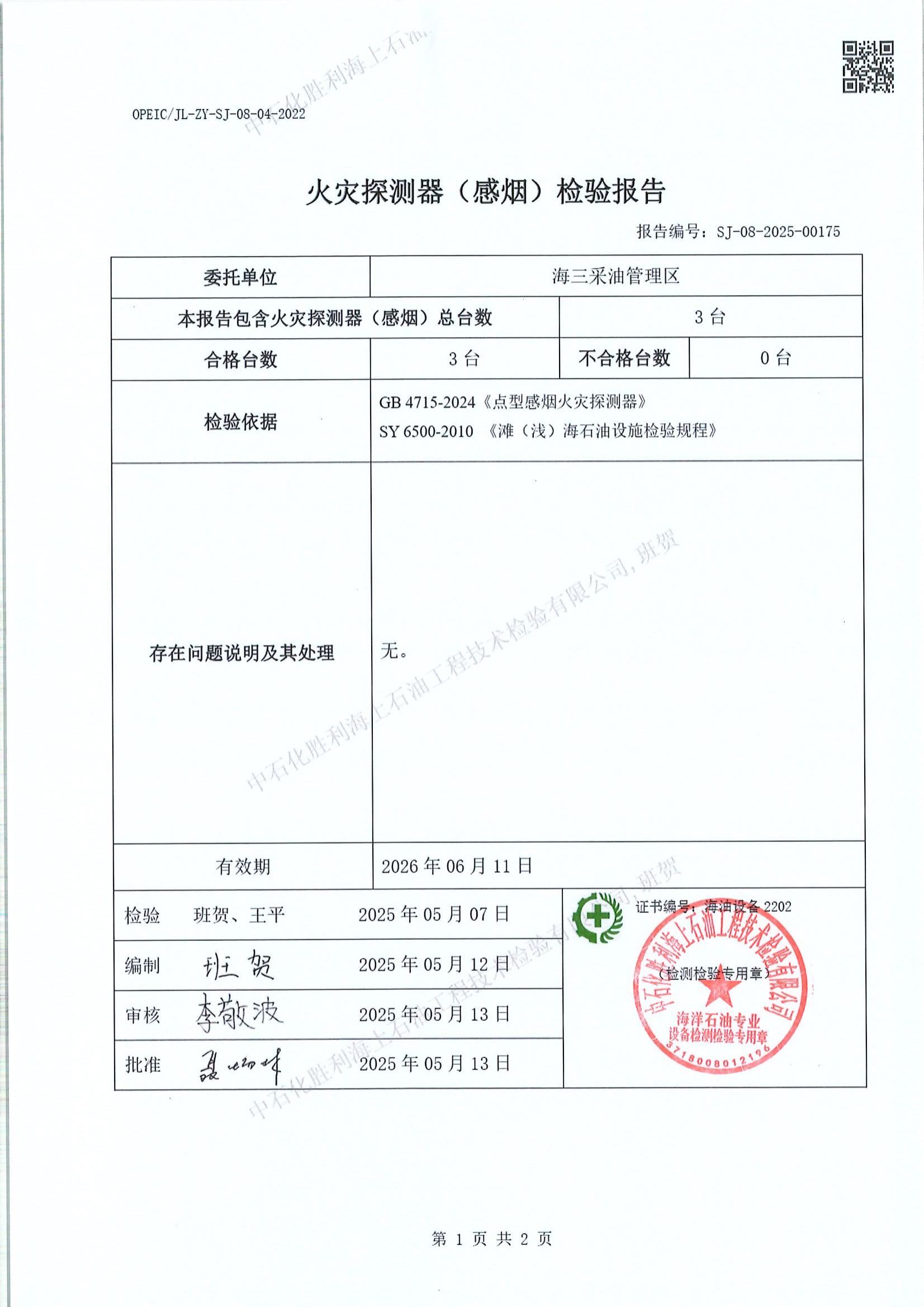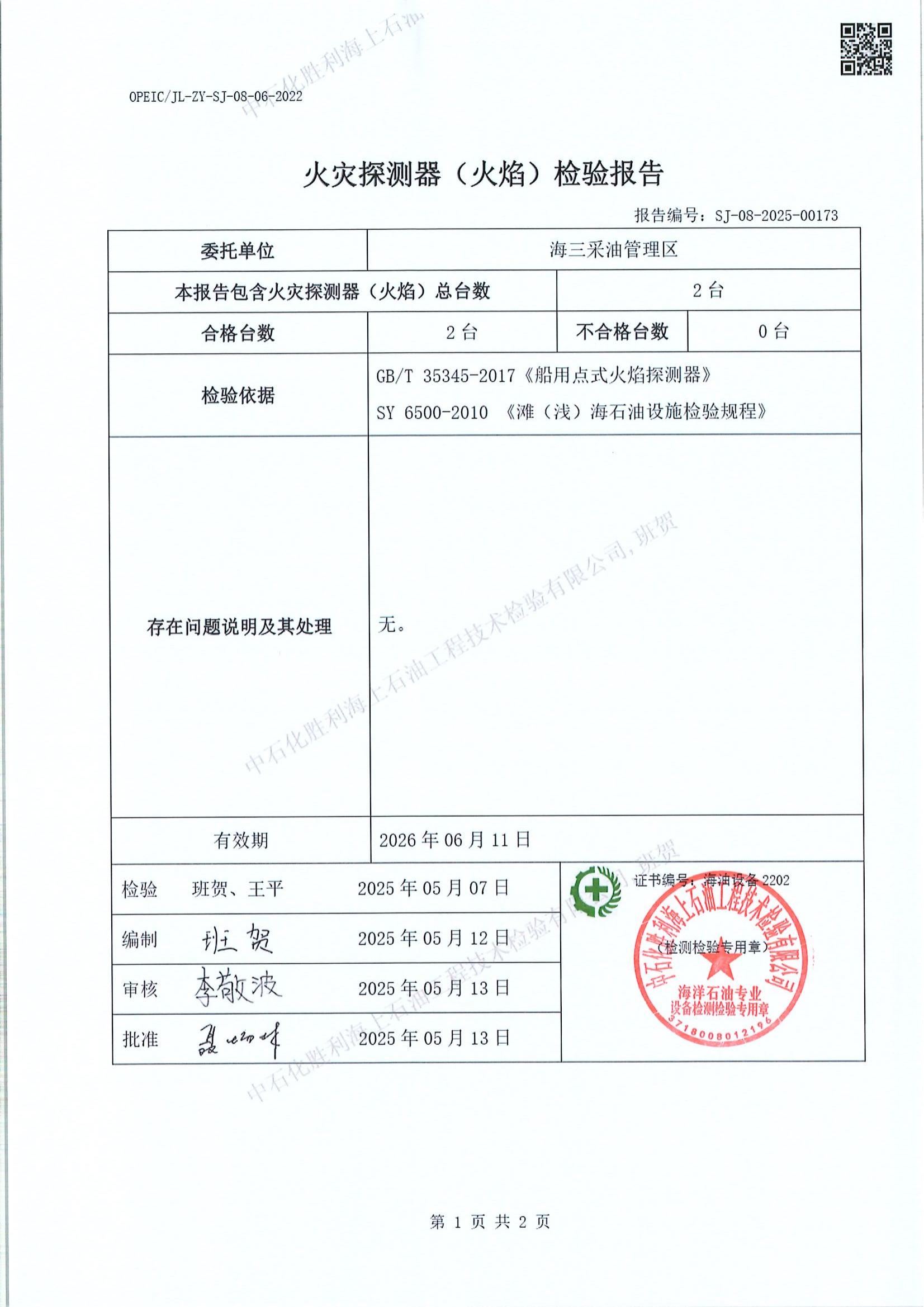 2、检验内容:报警控制器检验,固定式可燃气体检测报警器检验,火灾探测器(感温)检验,火灾探测器(感烟)检验,火灾探测器(火焰)检验