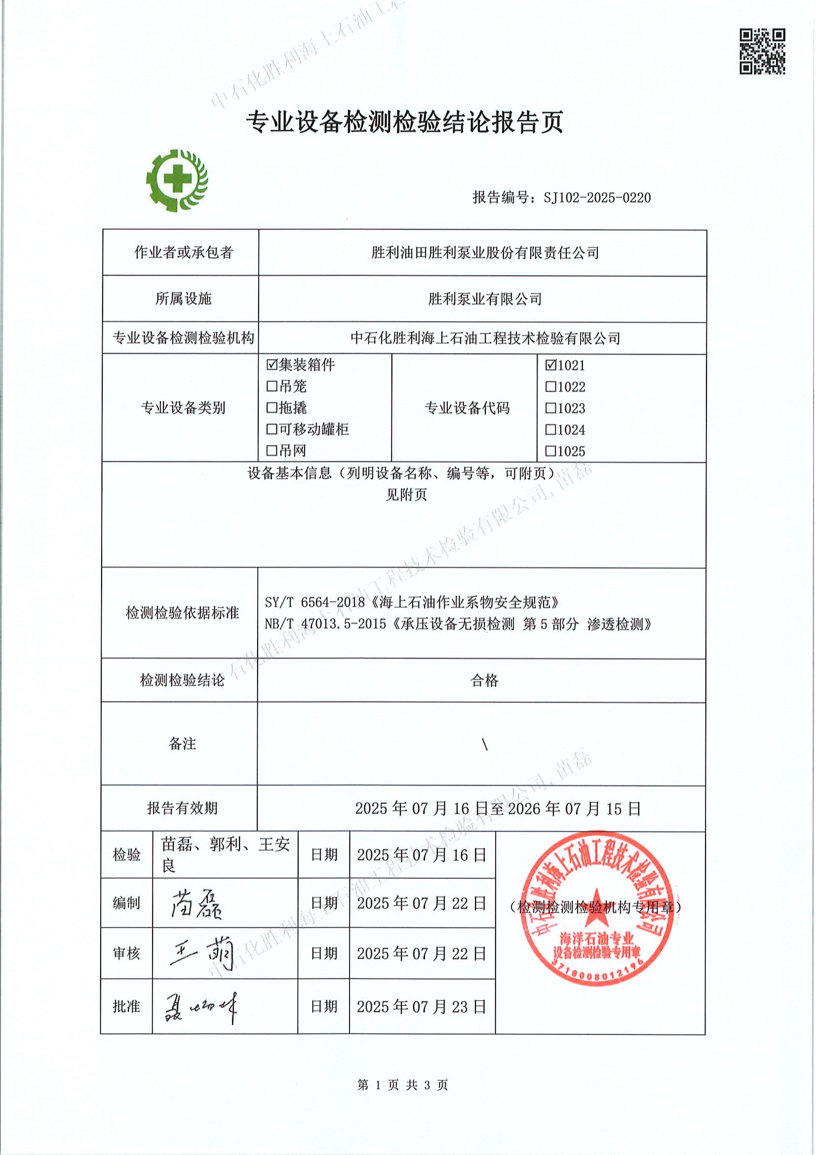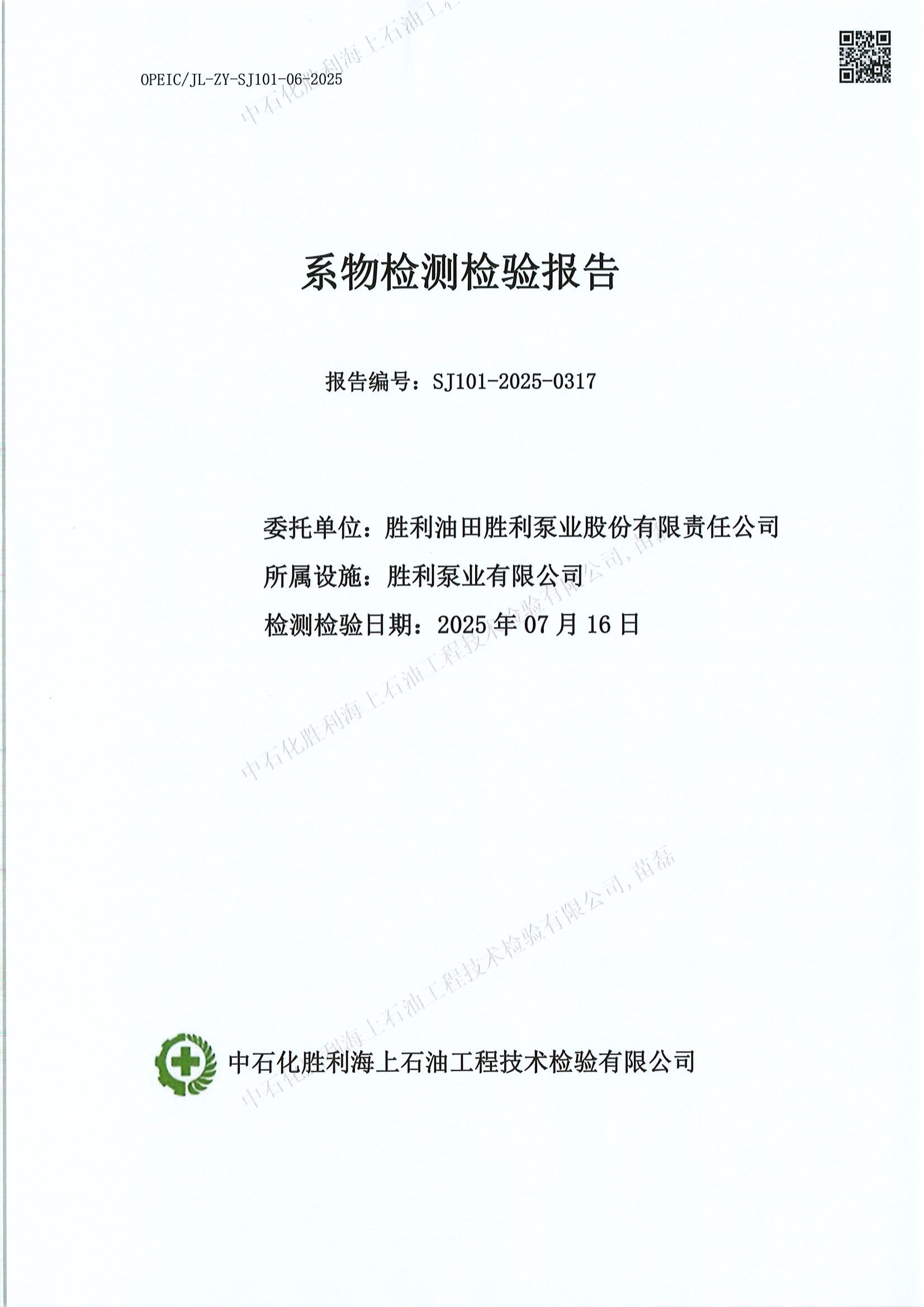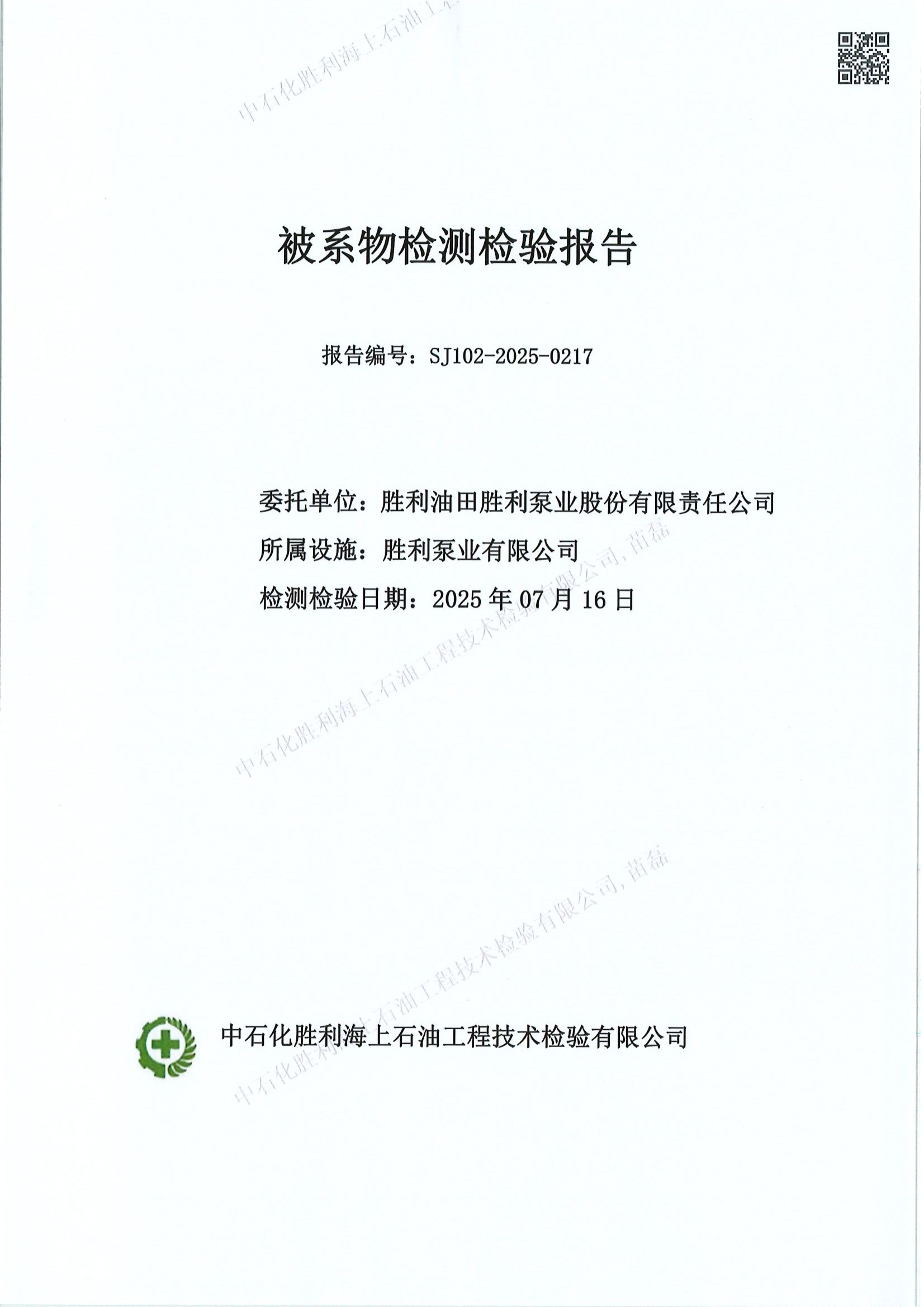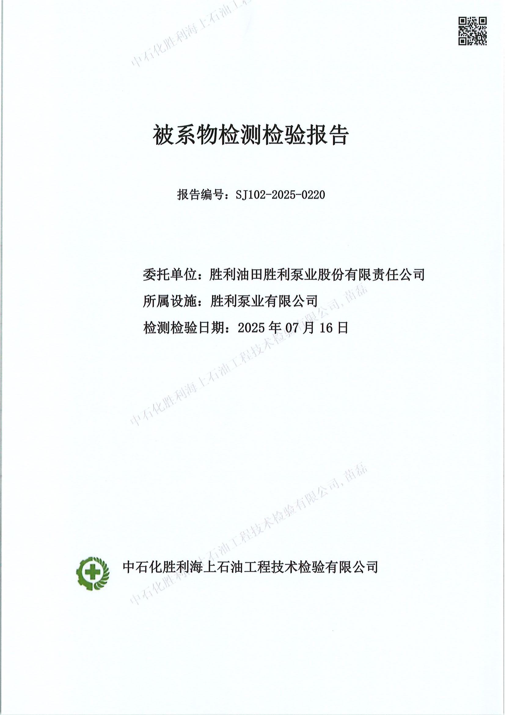 1、使用单位:胜利油田胜利泵业股份有限责任公司
