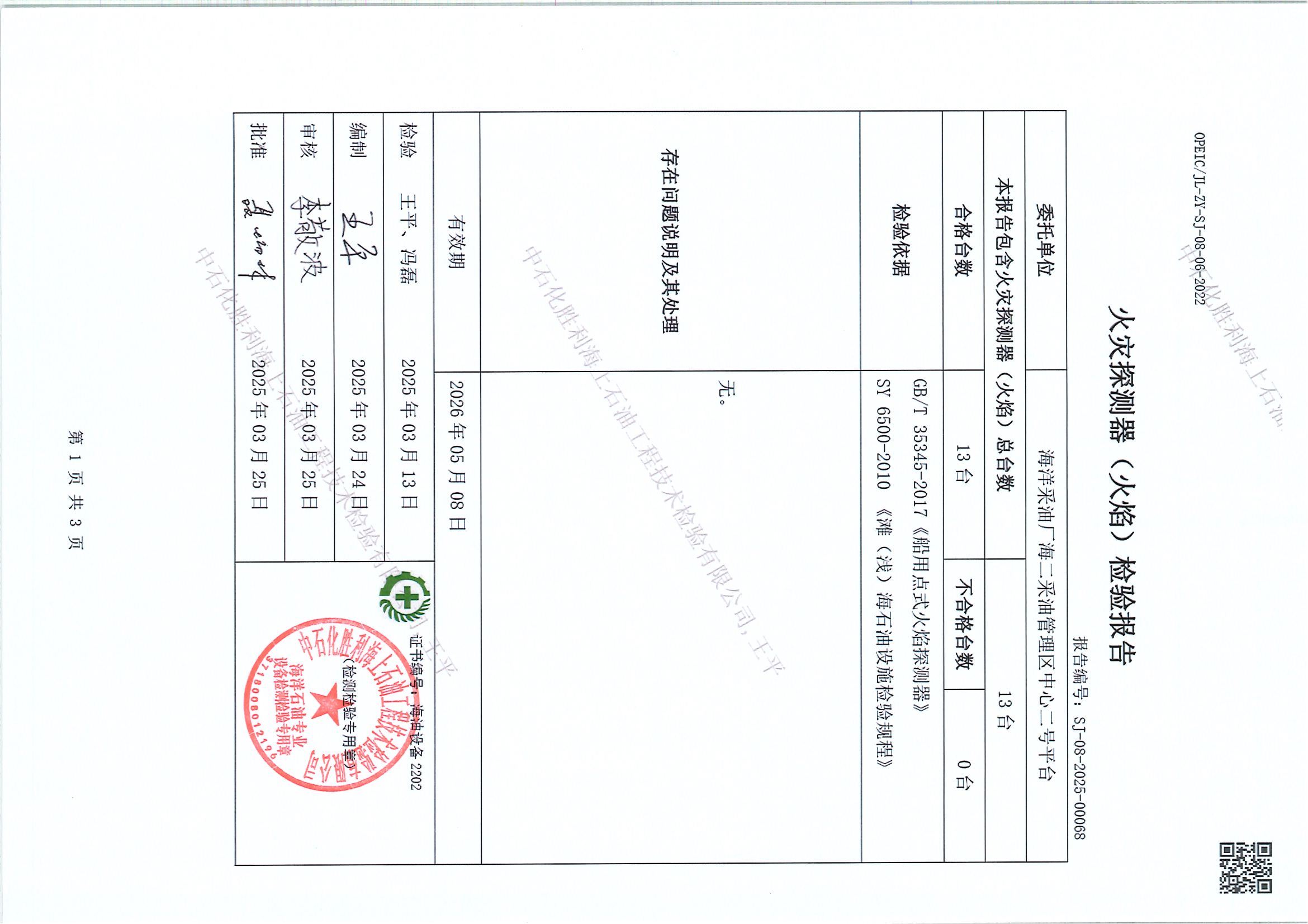 1、使用单位:海洋采油厂海二采油管理区中心二号平台