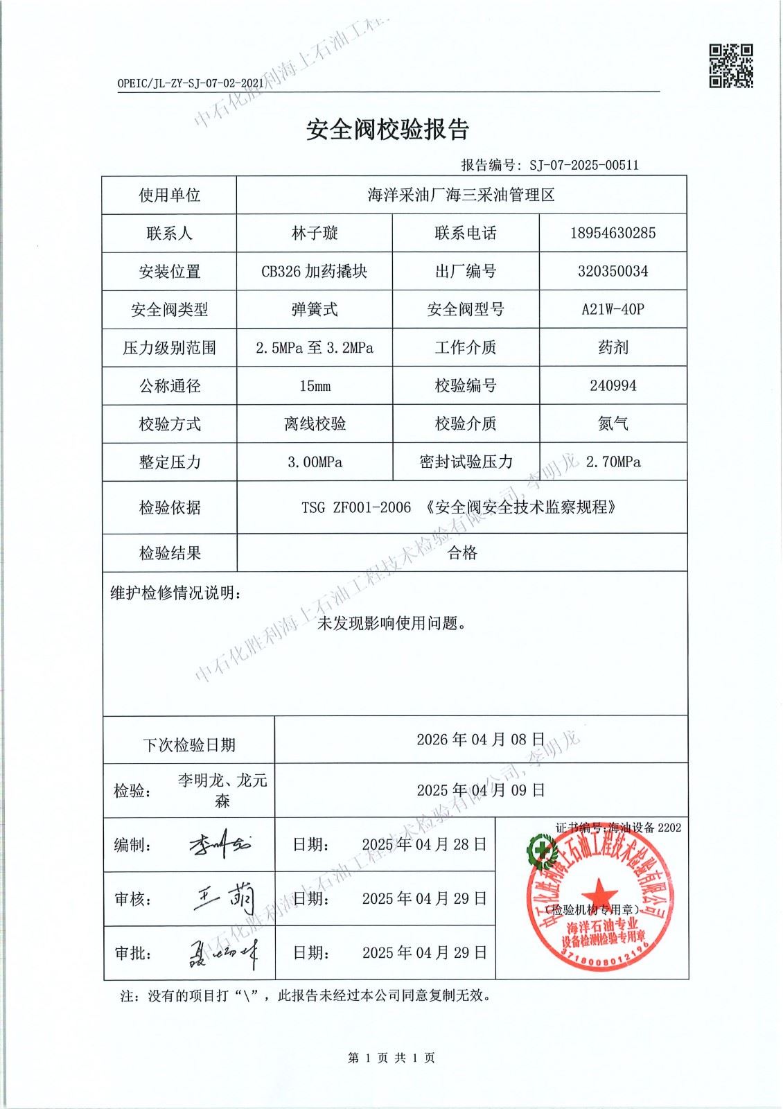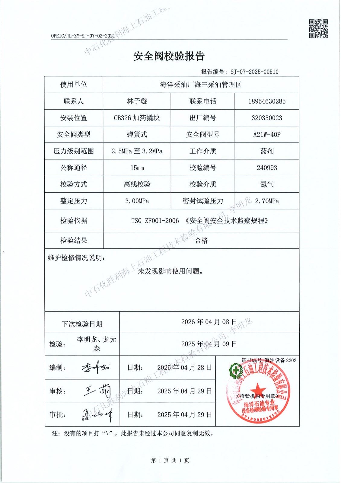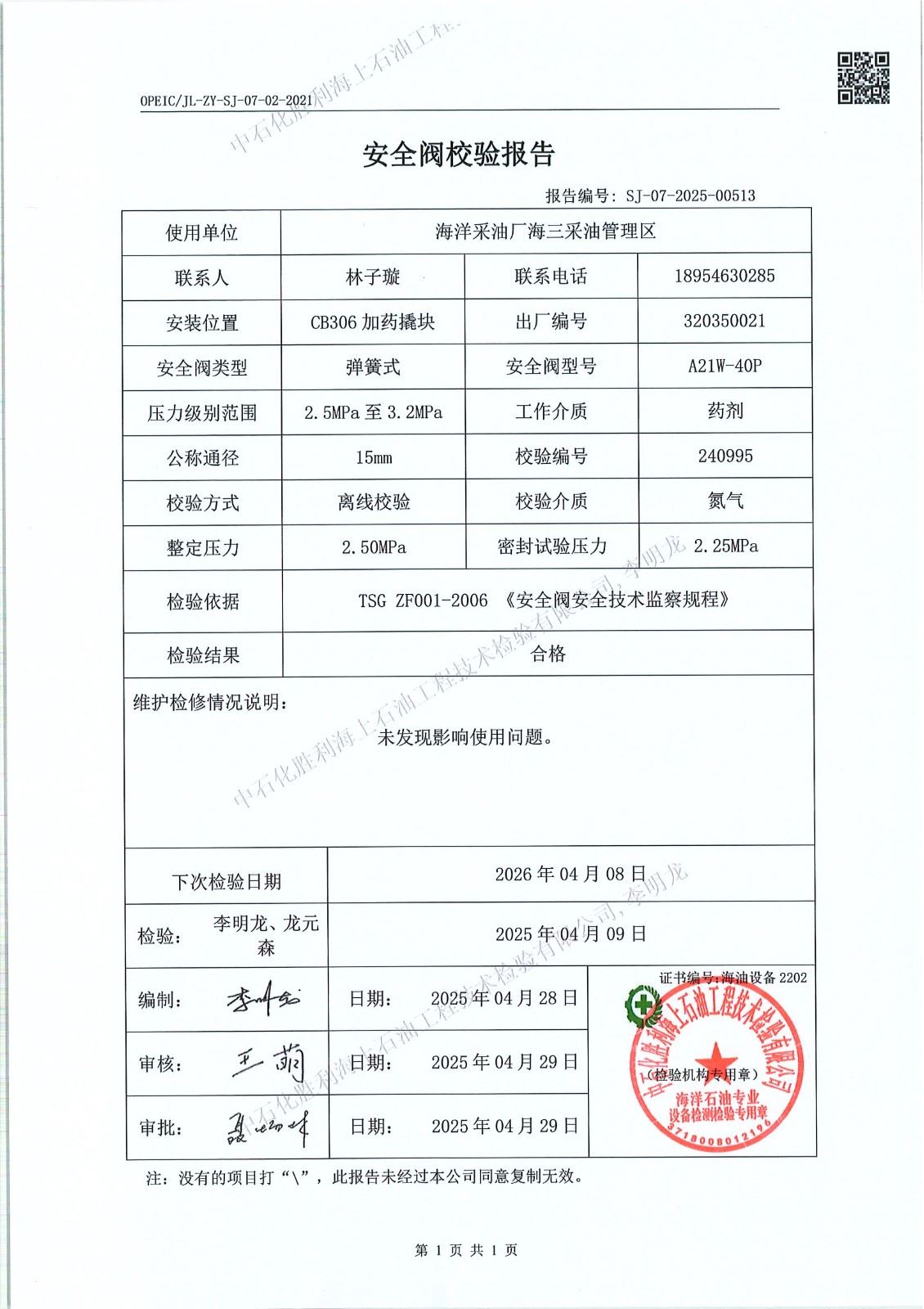 4、检验日期:2025年04月09日