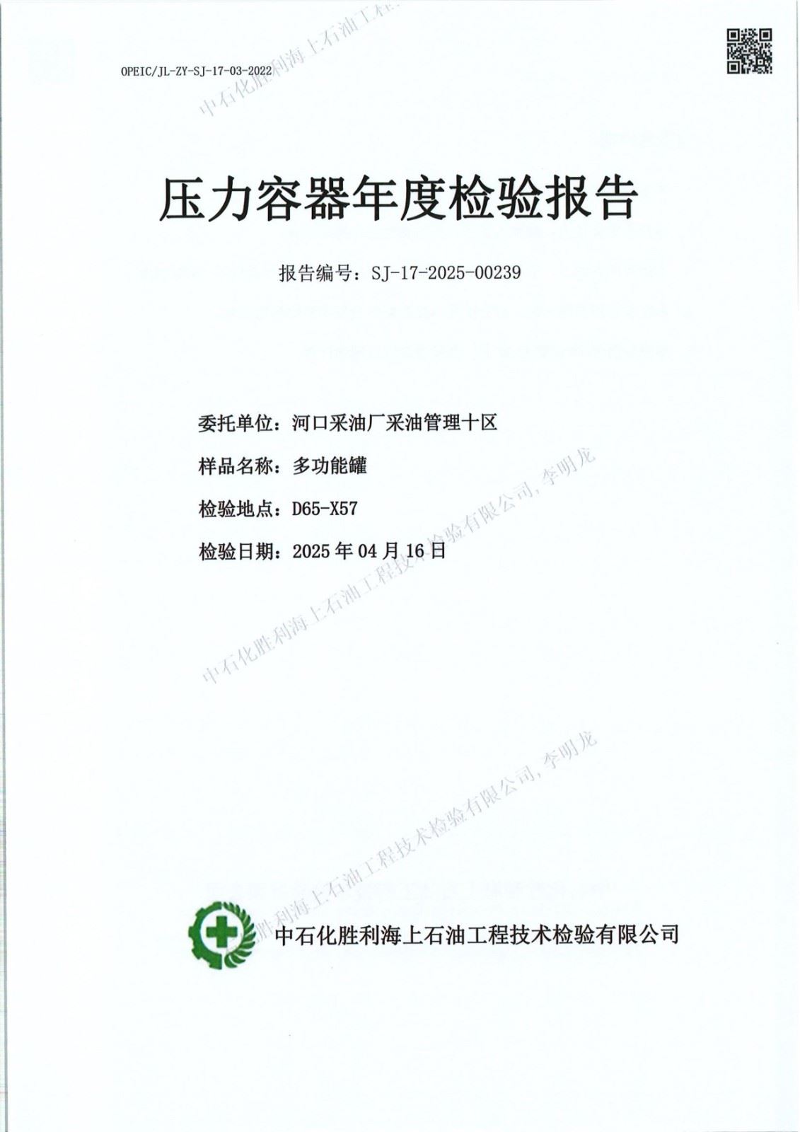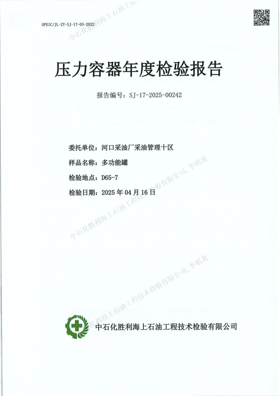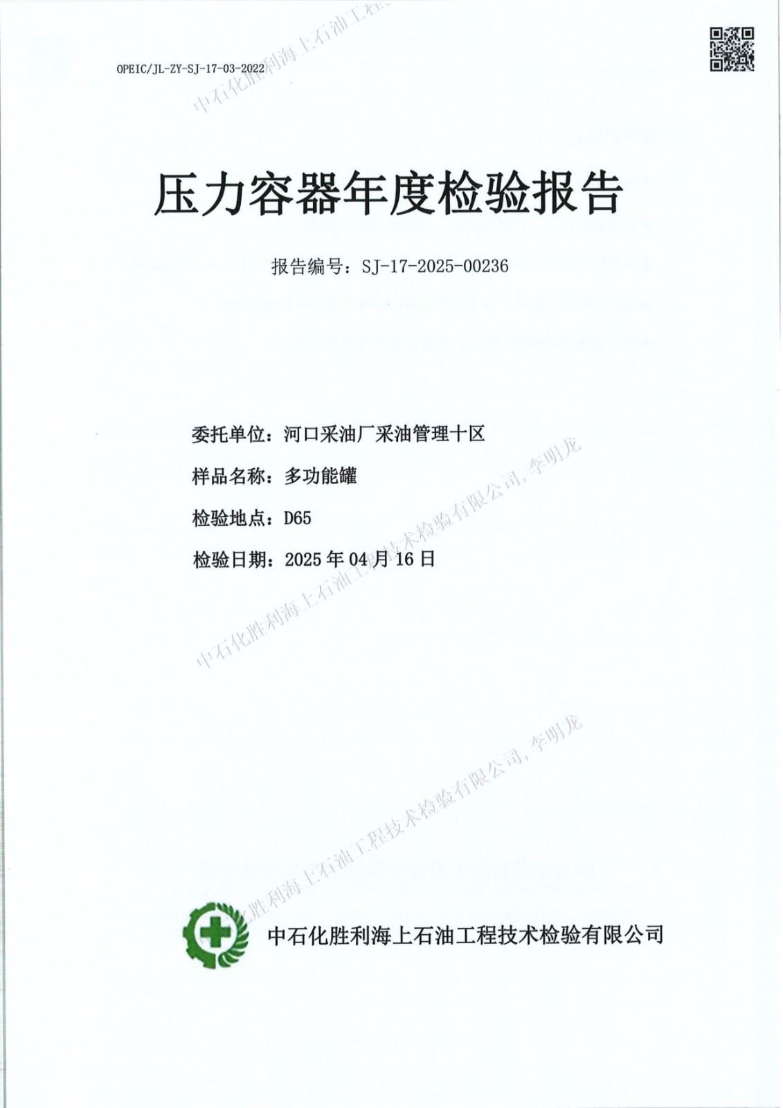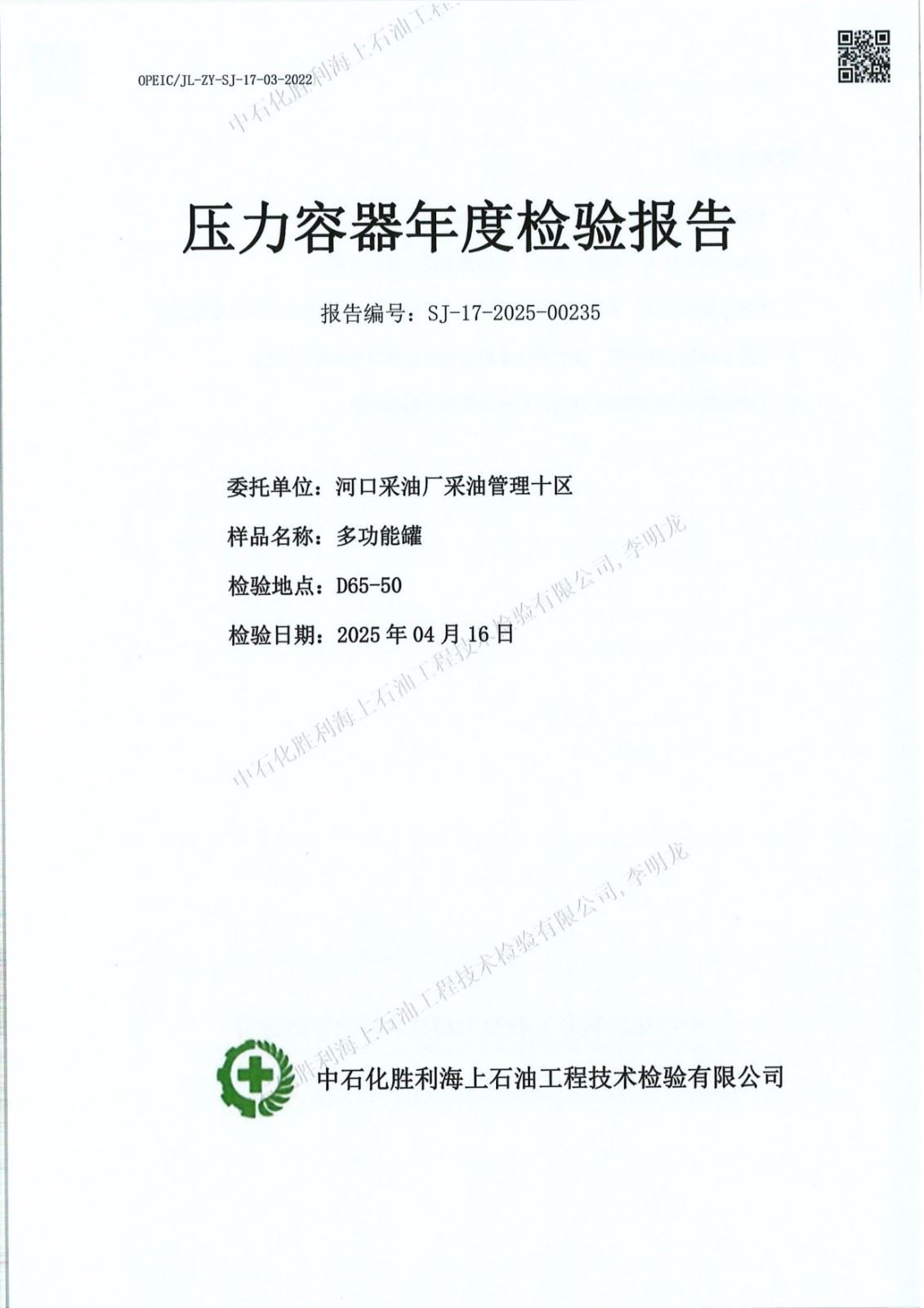 石化胜利海上石油工技术检验有限公司