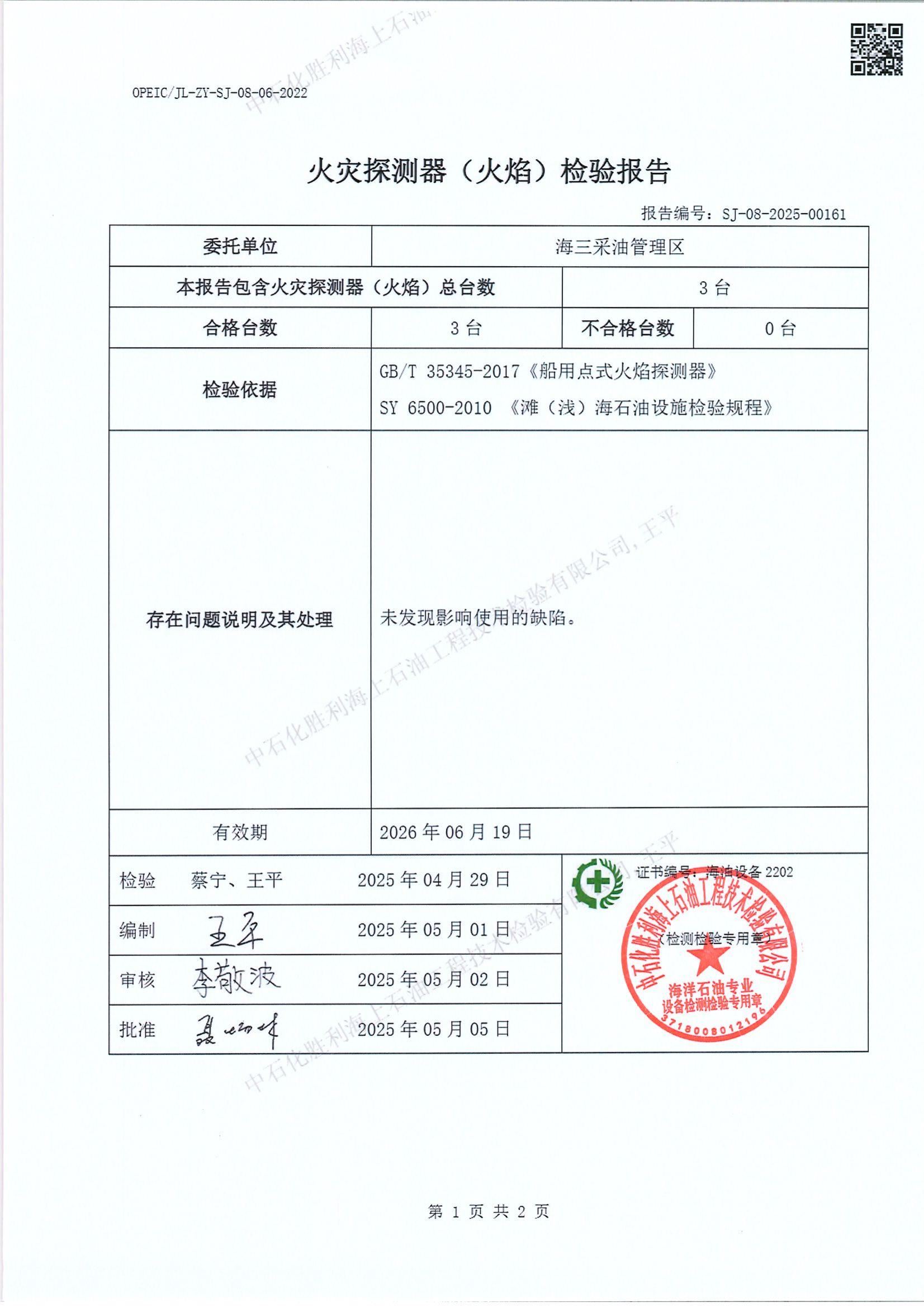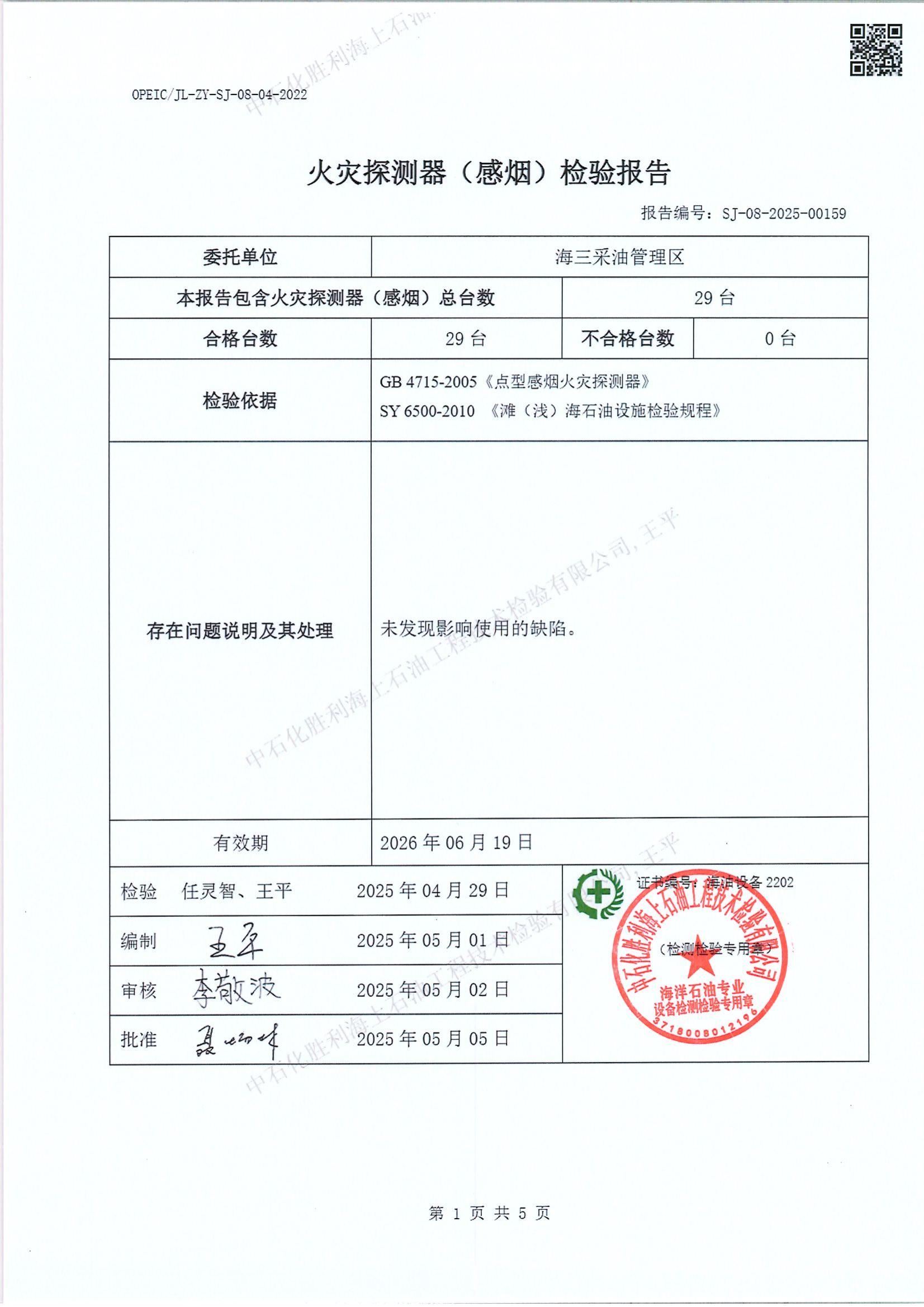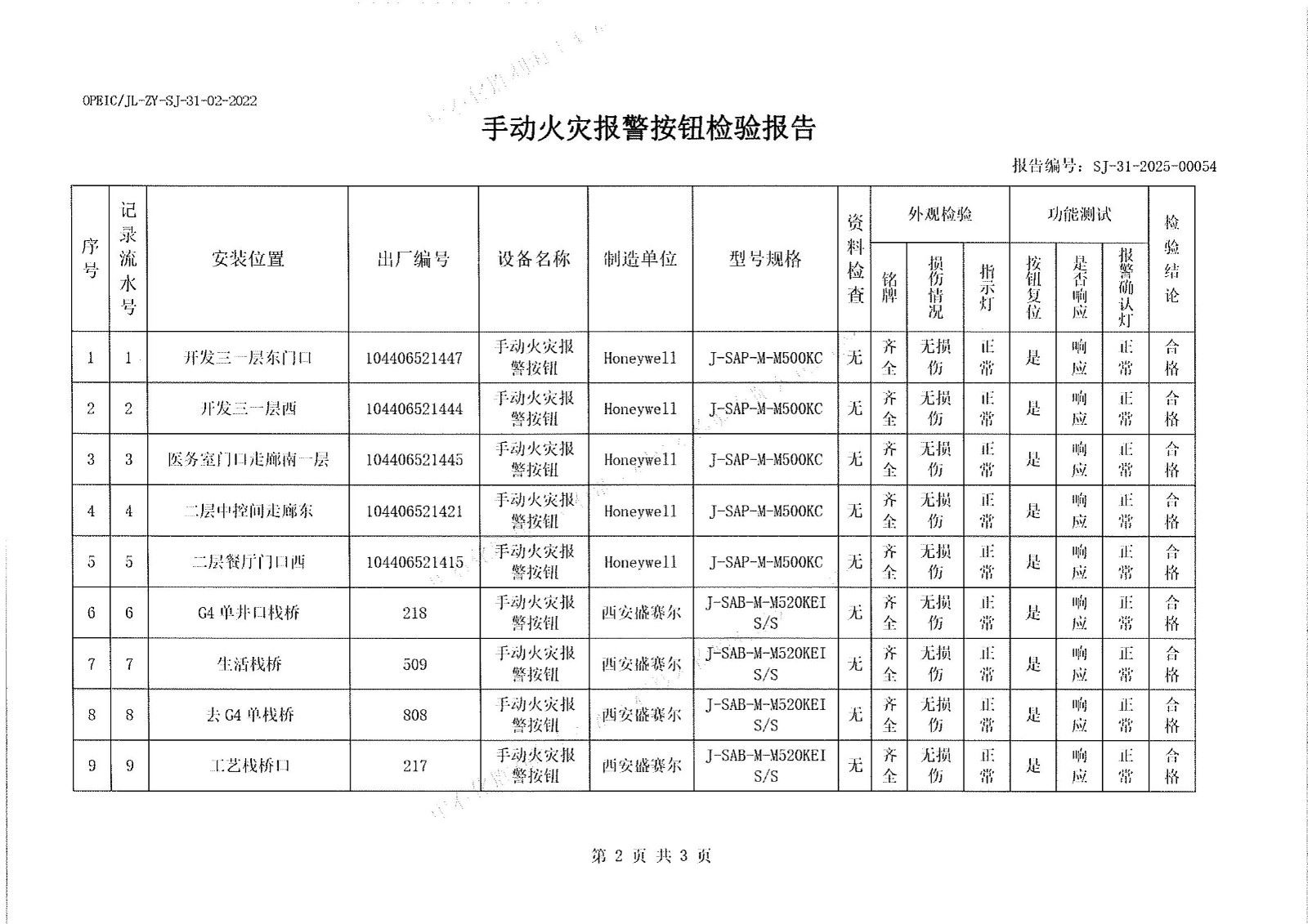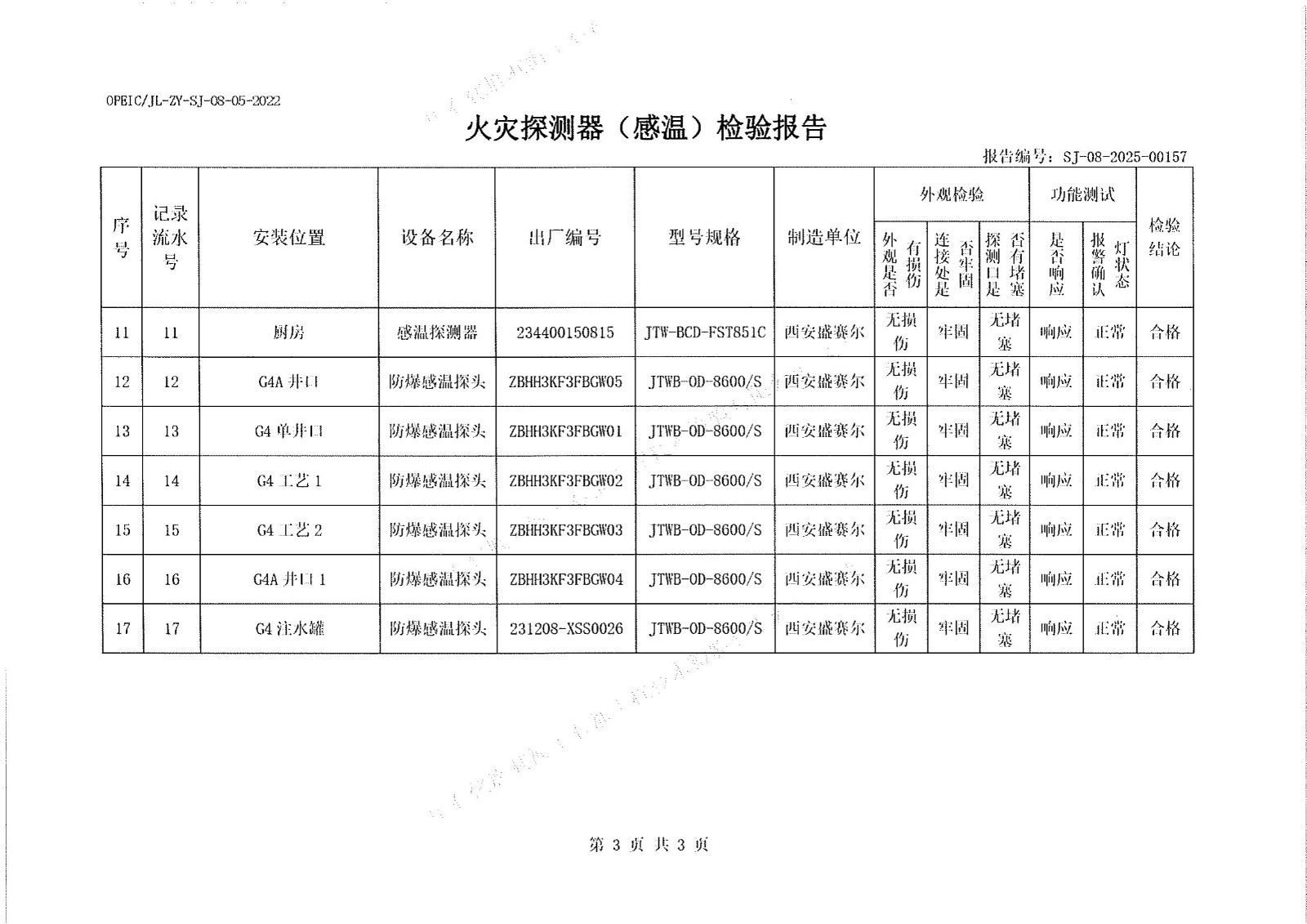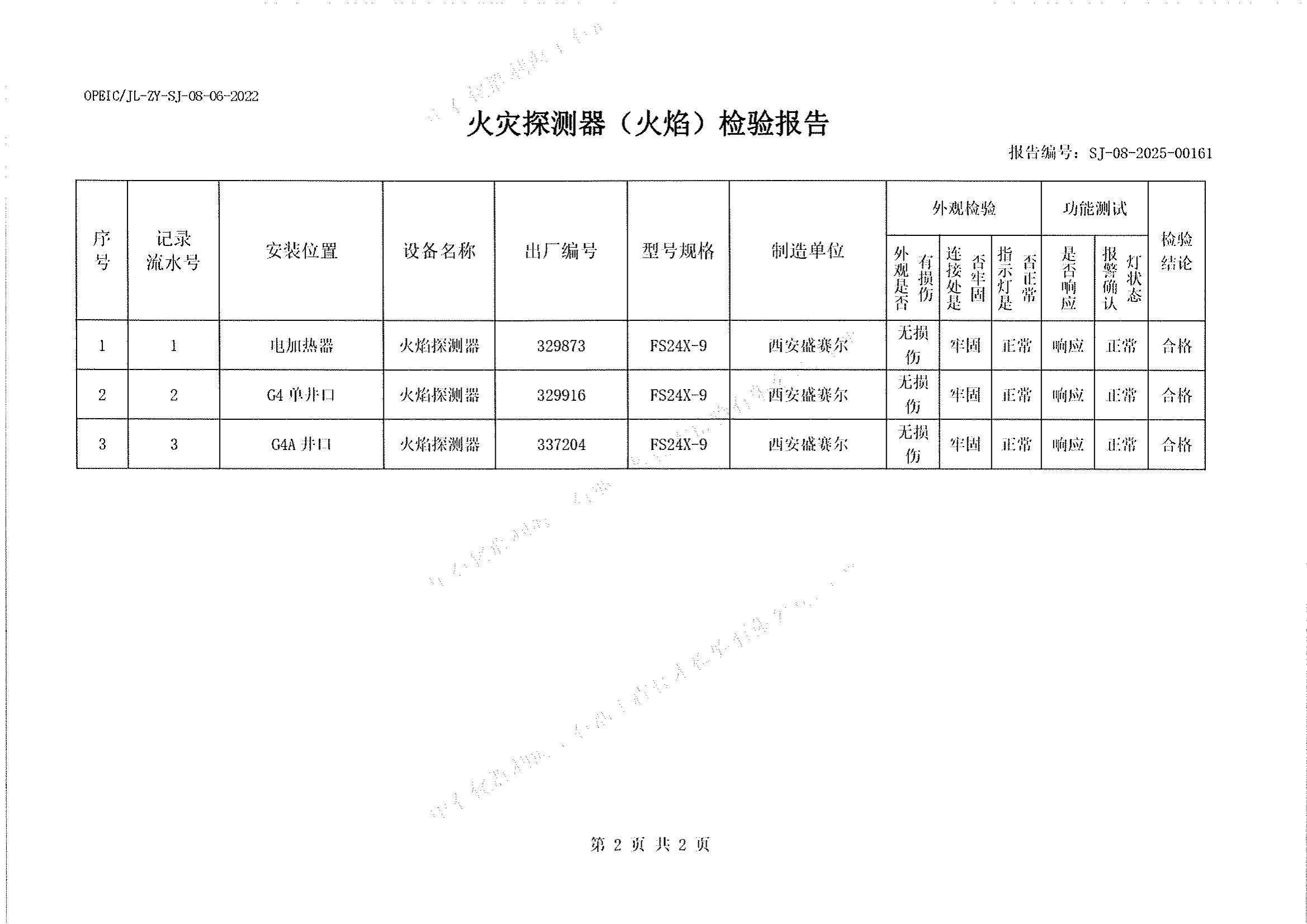 2、检验内容:报警控制器检验,固定式可燃气体检测报警器检验,固定式硫化氢气体检测仪检验,火灾探测器(感温)检验,火灾探测器(感烟)检验,手动火灾报警按钮检验,火灾探测器(火焰)