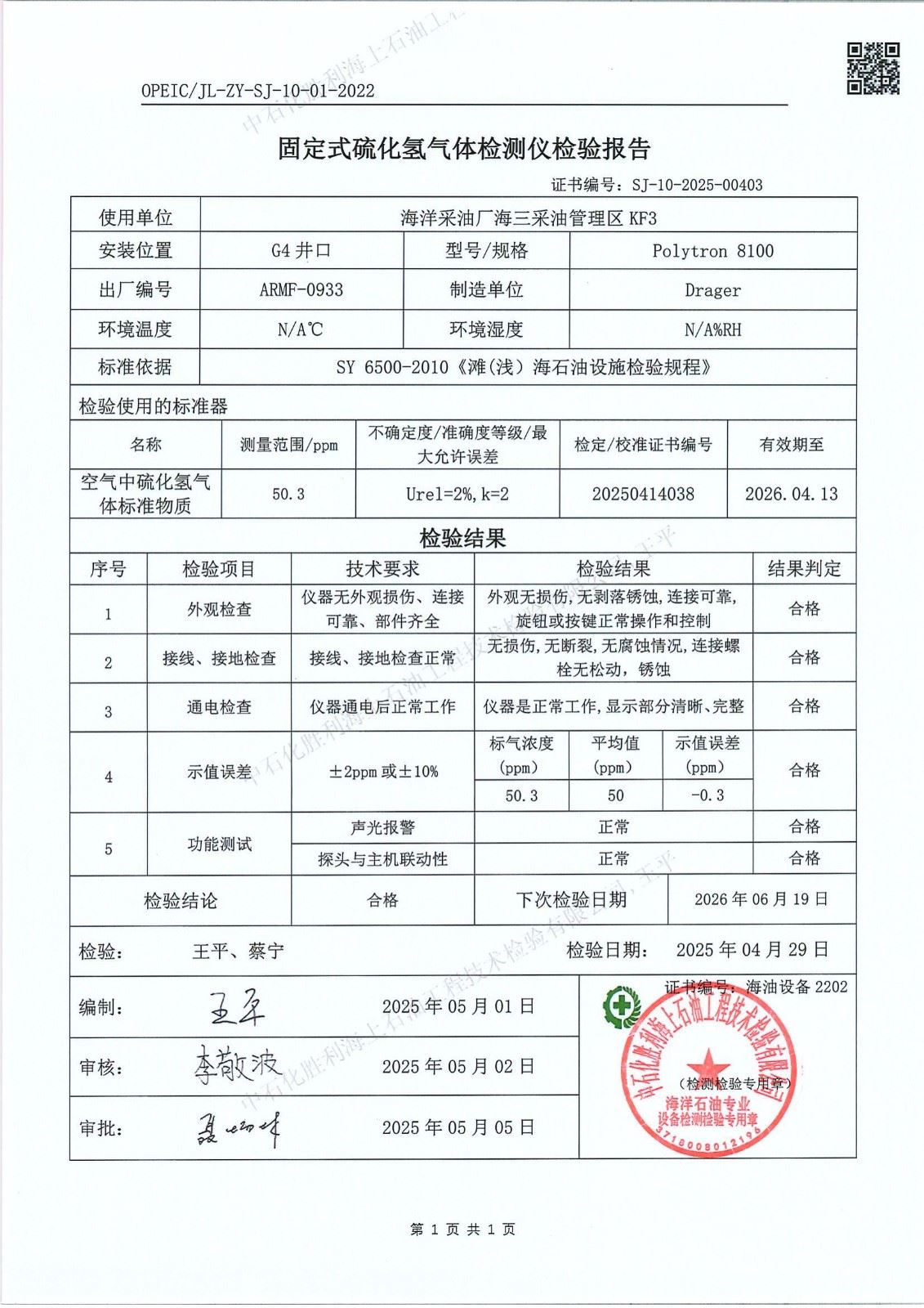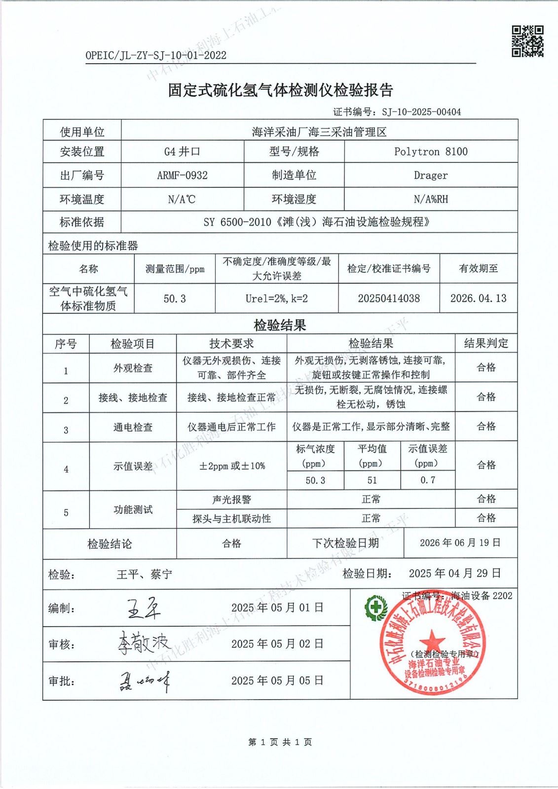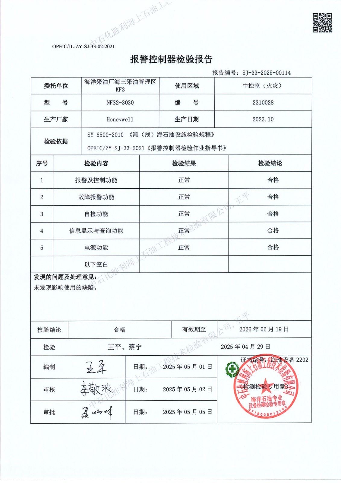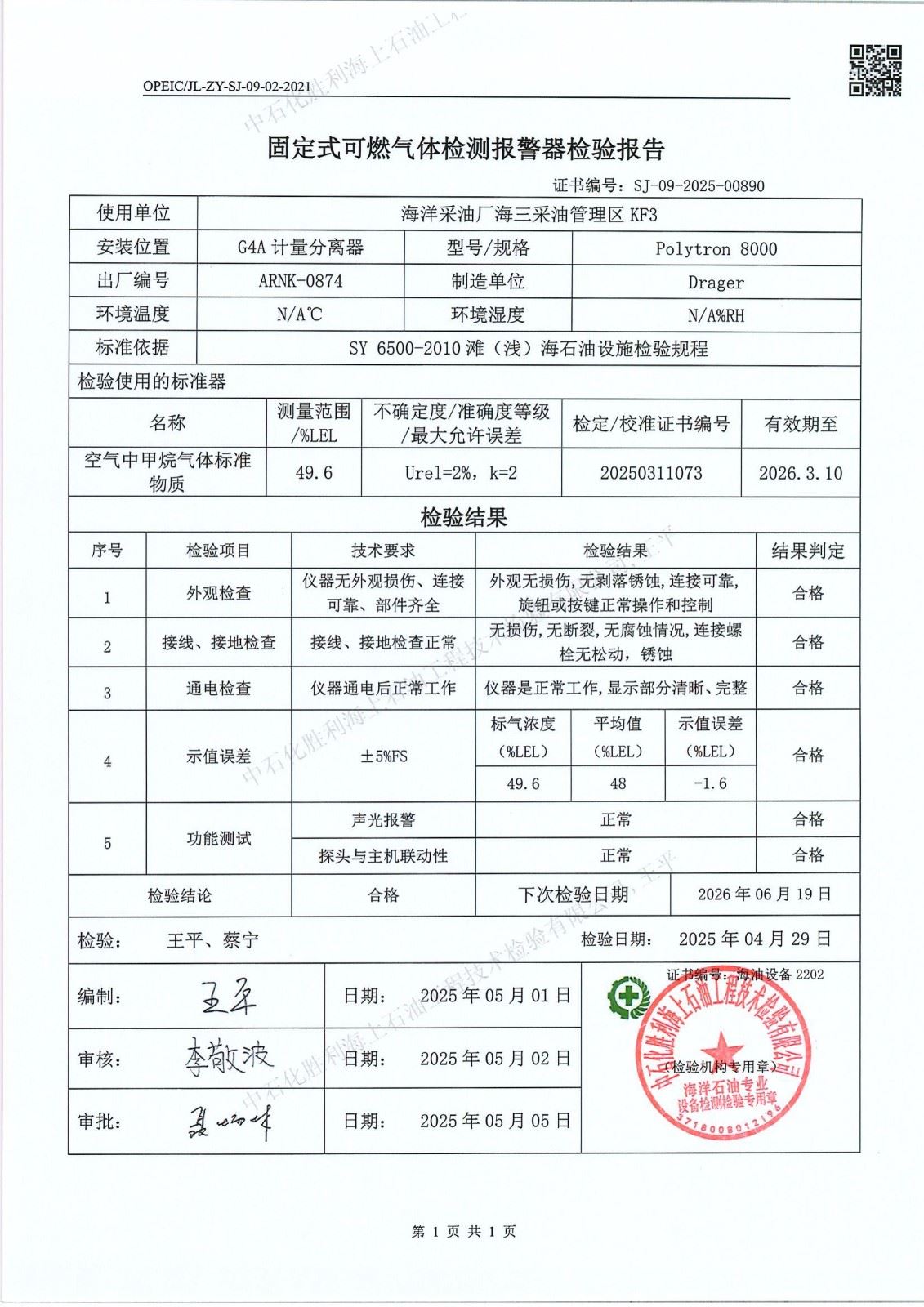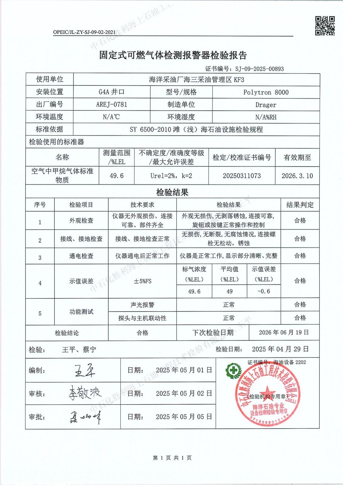 2、检验内容:报警控制器检验,固定式可燃气体检测报警器检验,固定式硫化氢气体检测仪检验,火灾探测器(感温)检验,火灾探测器(感烟)检验,手动火灾报警按钮检验,火灾探测器(火焰)