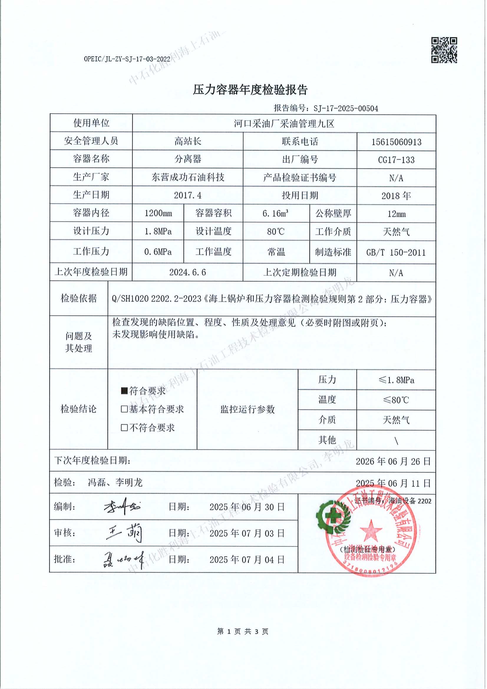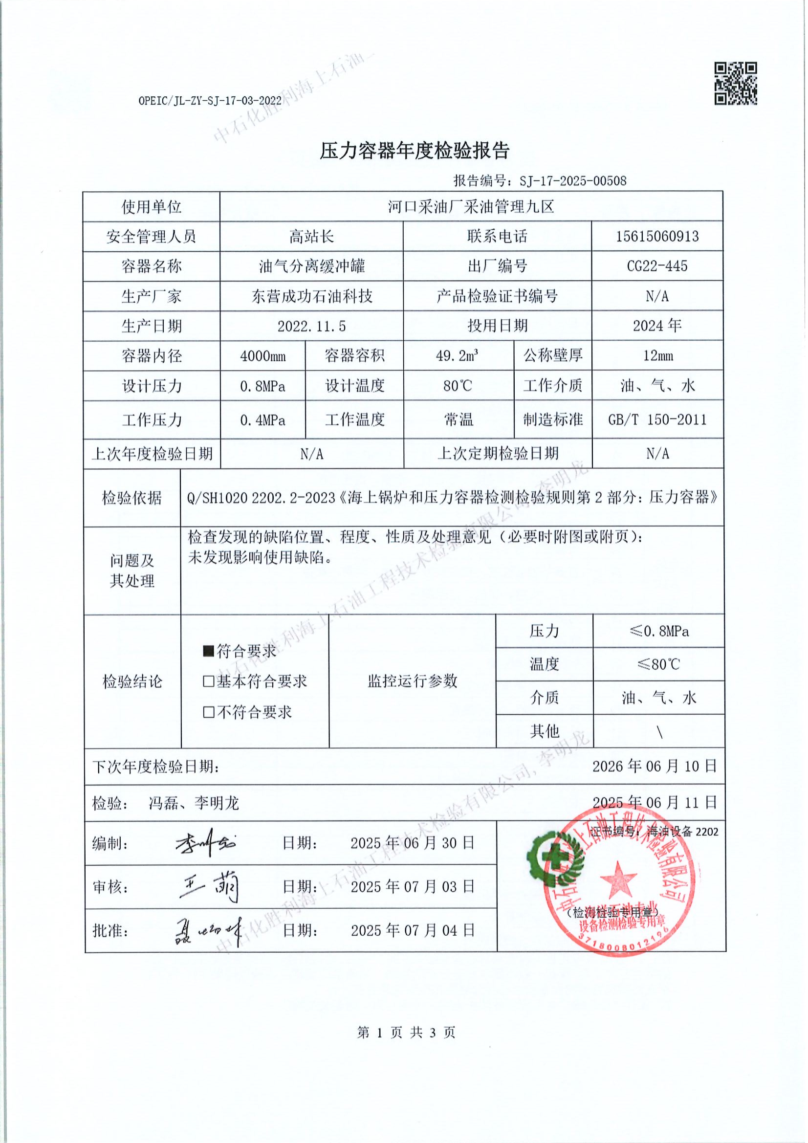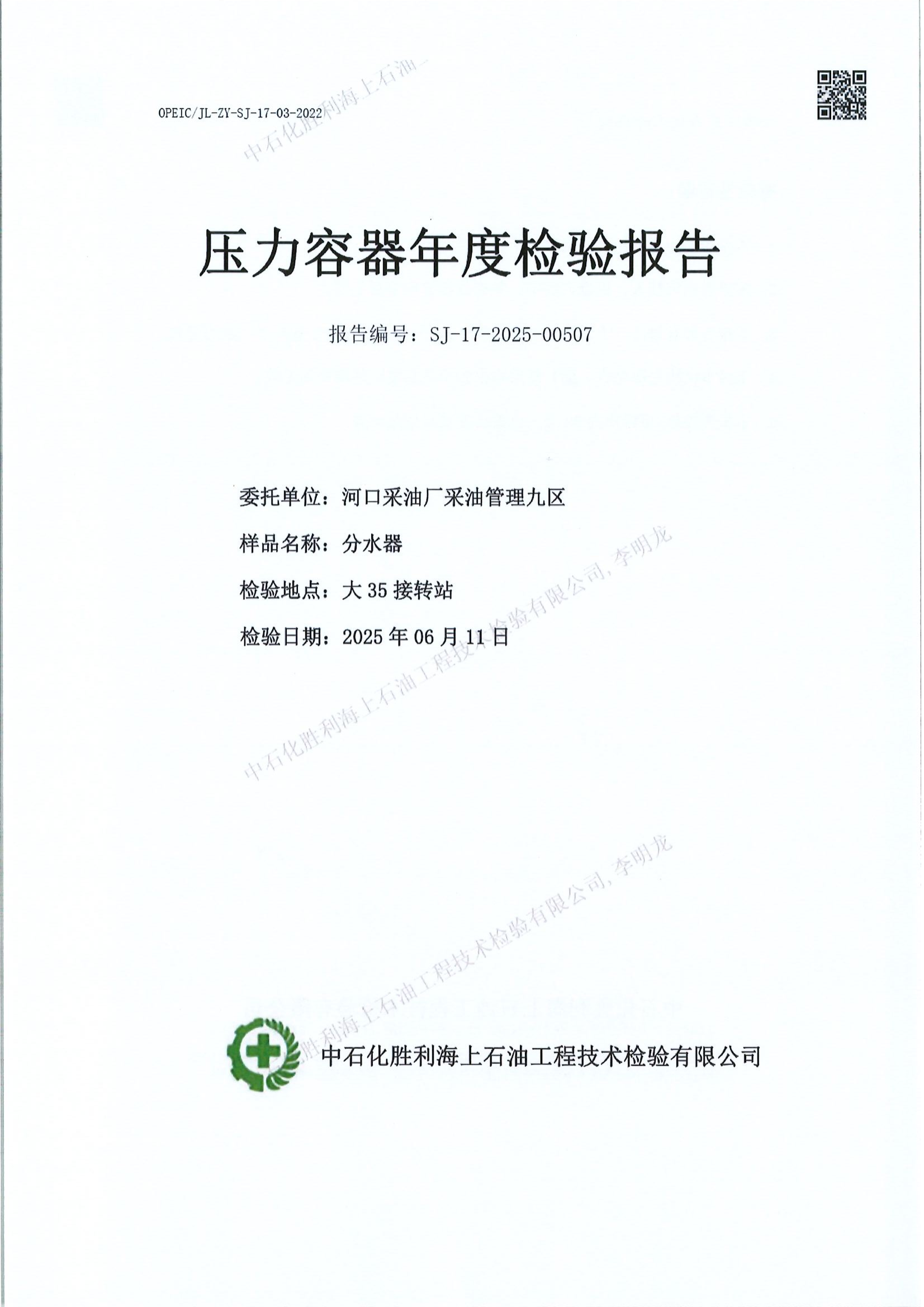 1、使用单位:河口采油厂采油管理九区大三五接转站