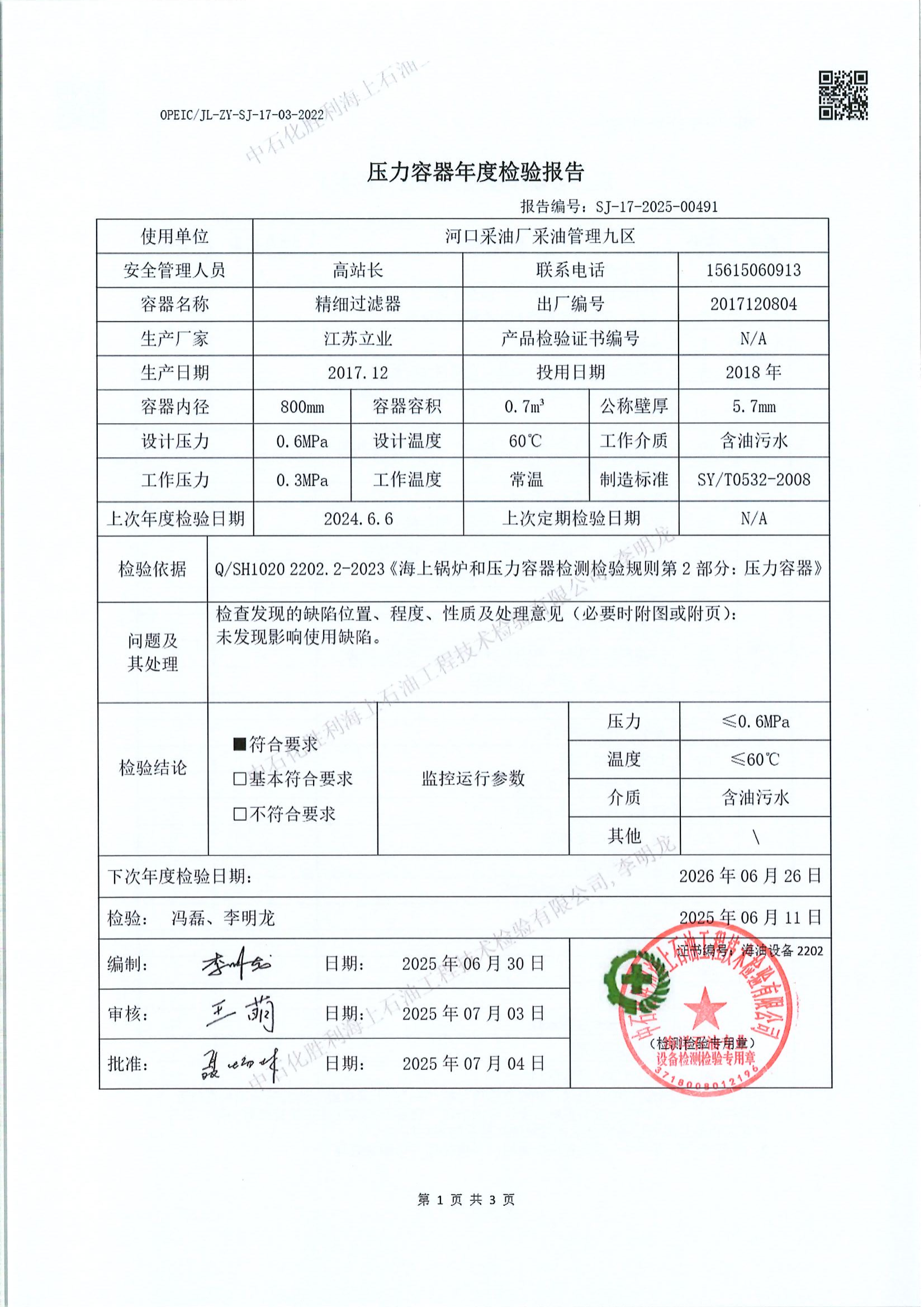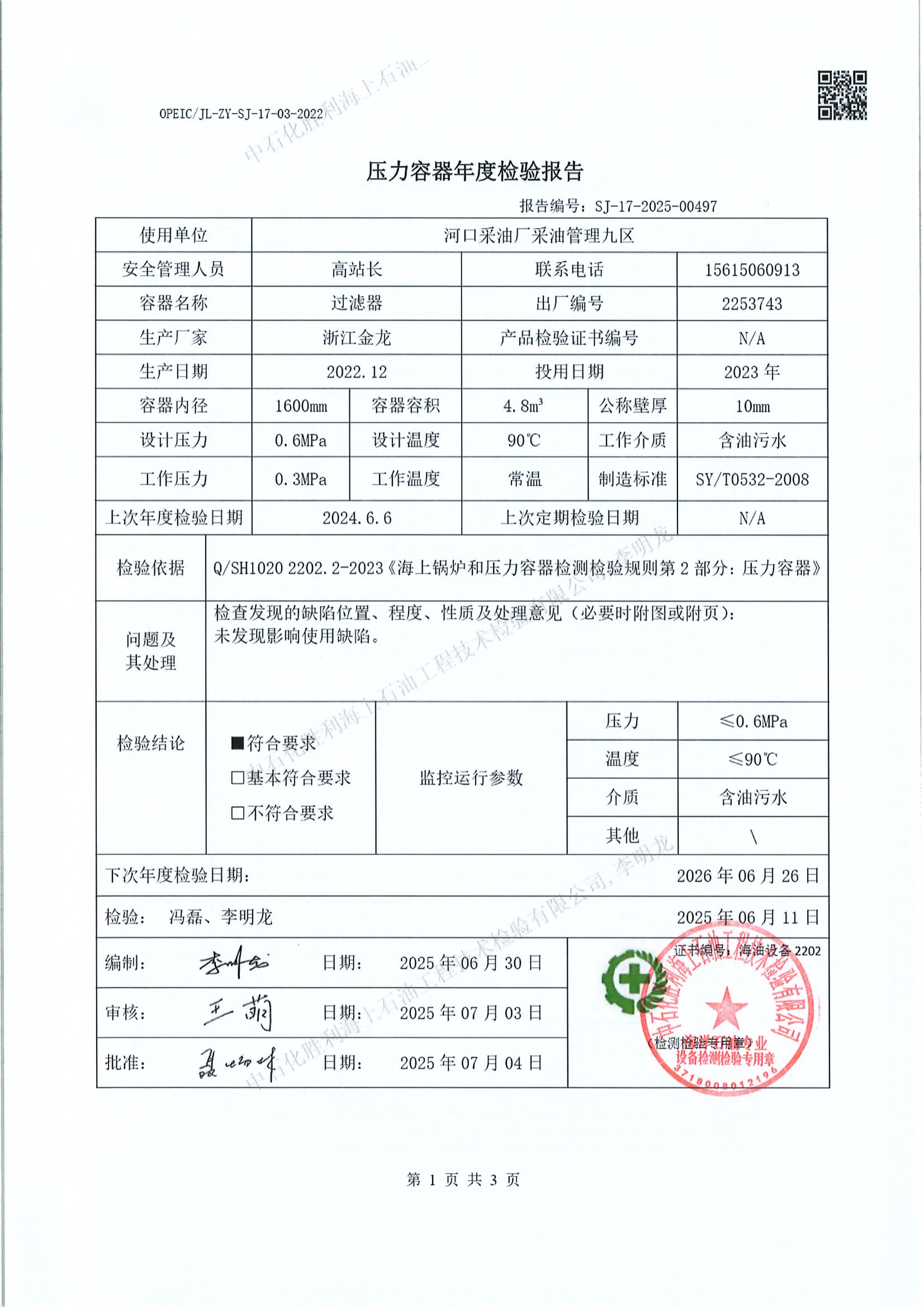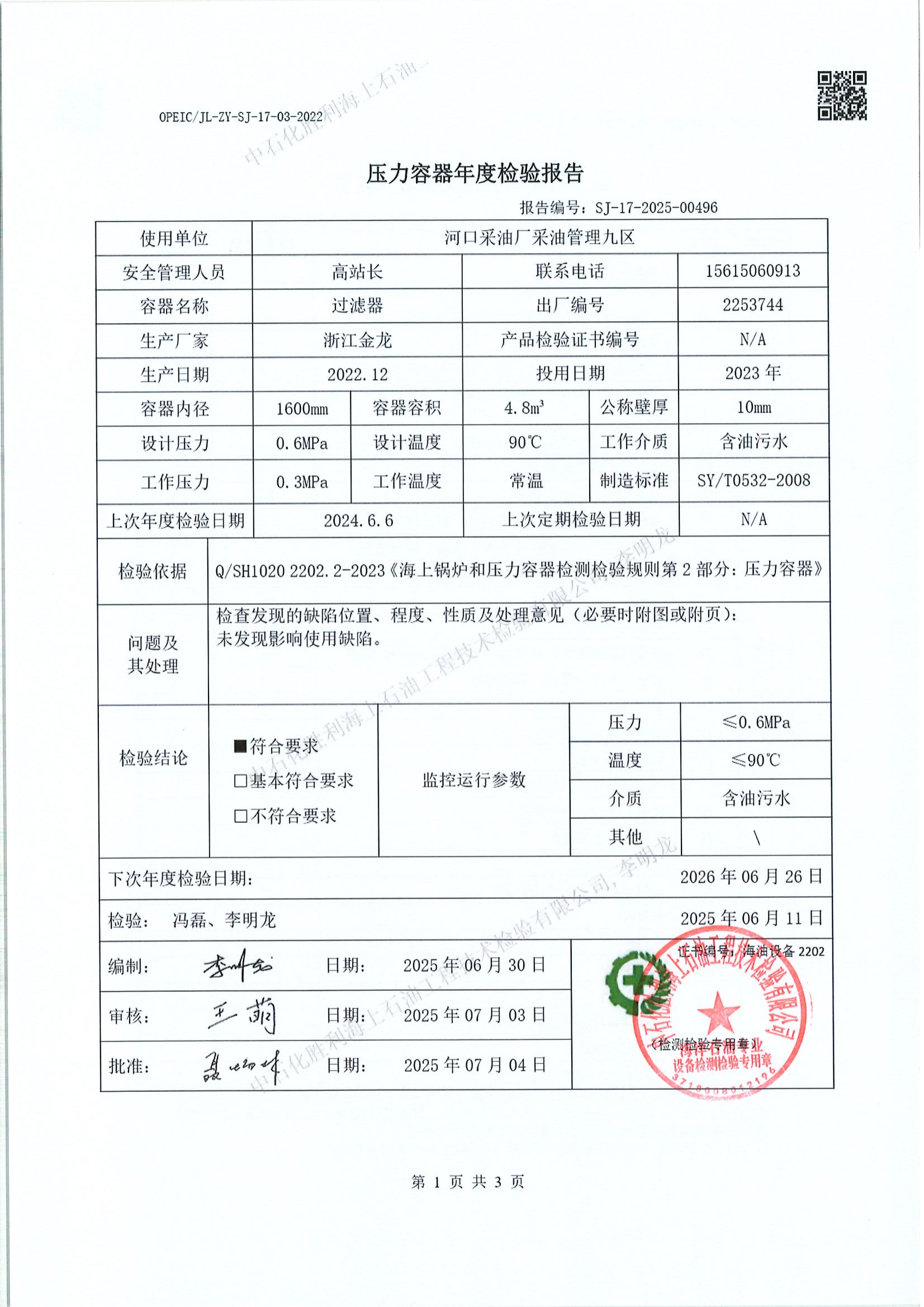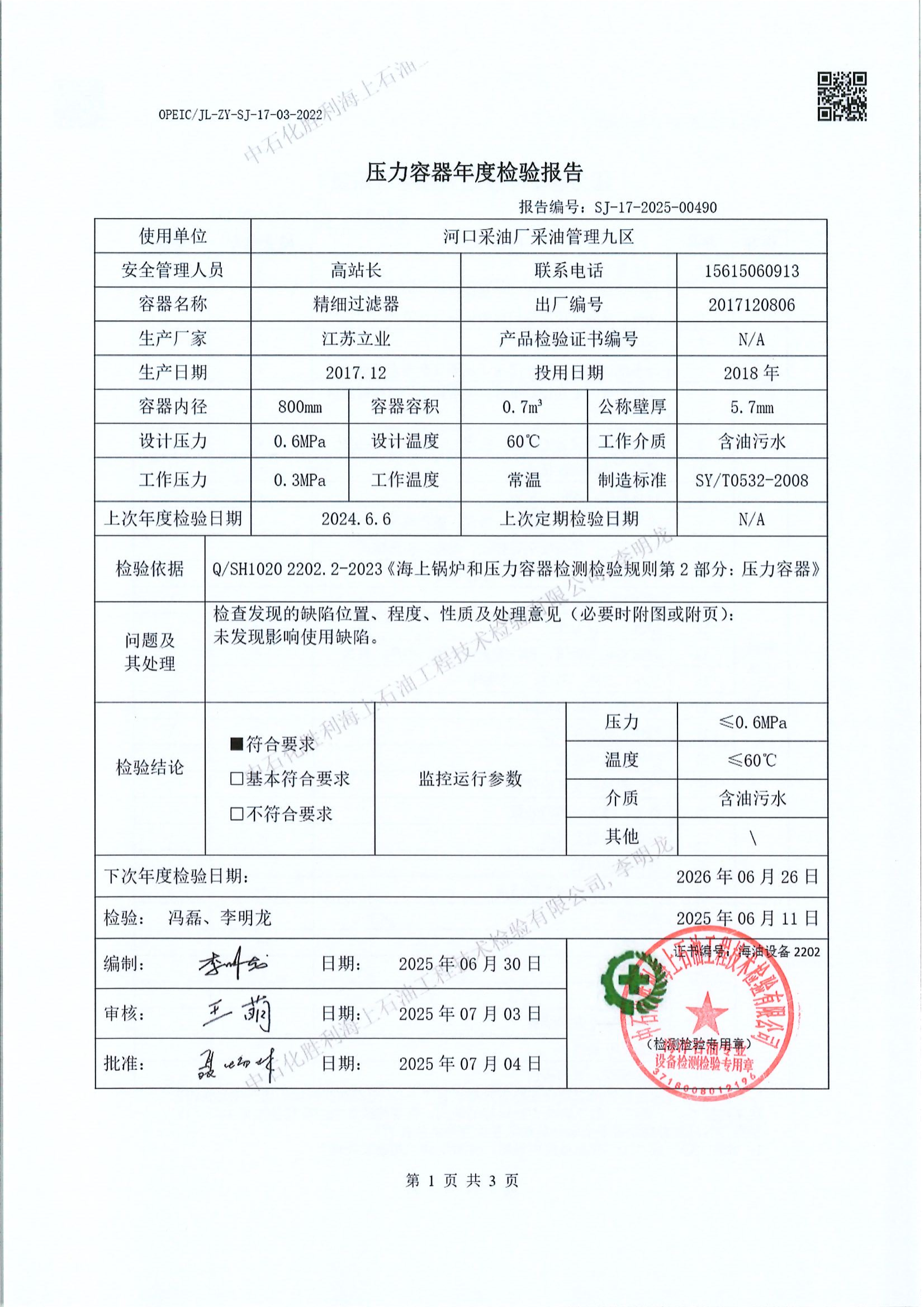 1、使用单位:河口采油厂采油管理九区大三五接转站