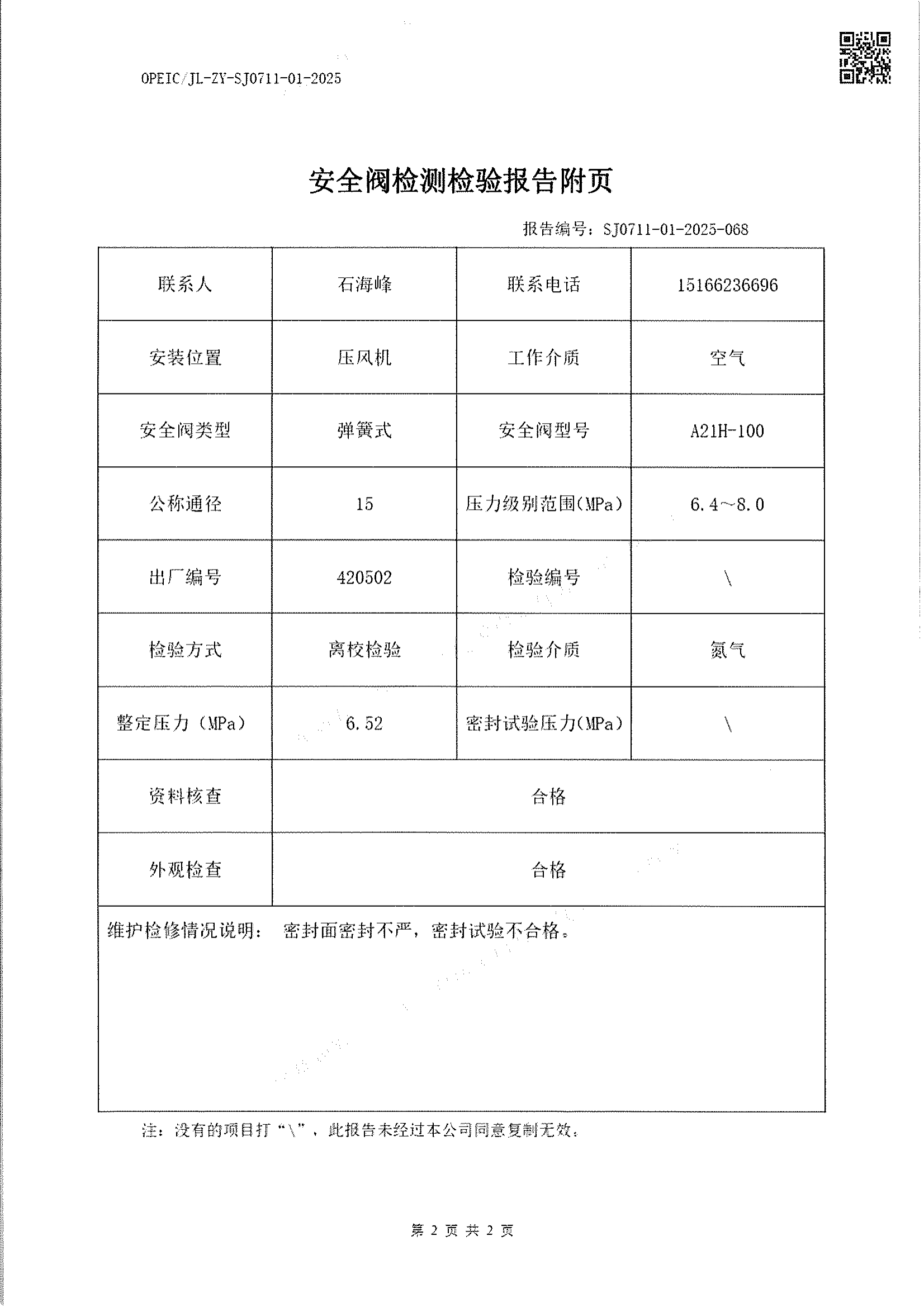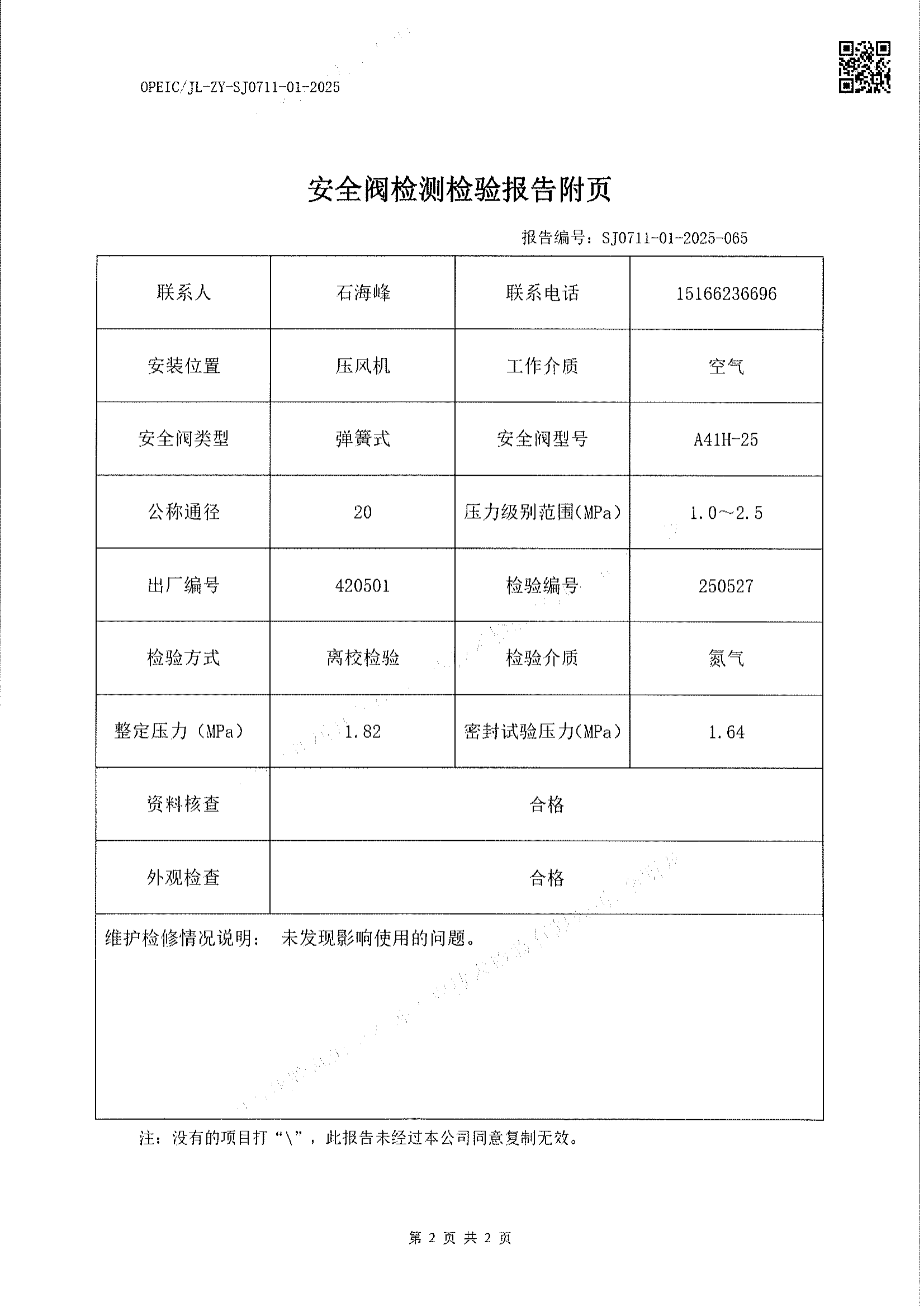 2、检验内容:安全阀检验