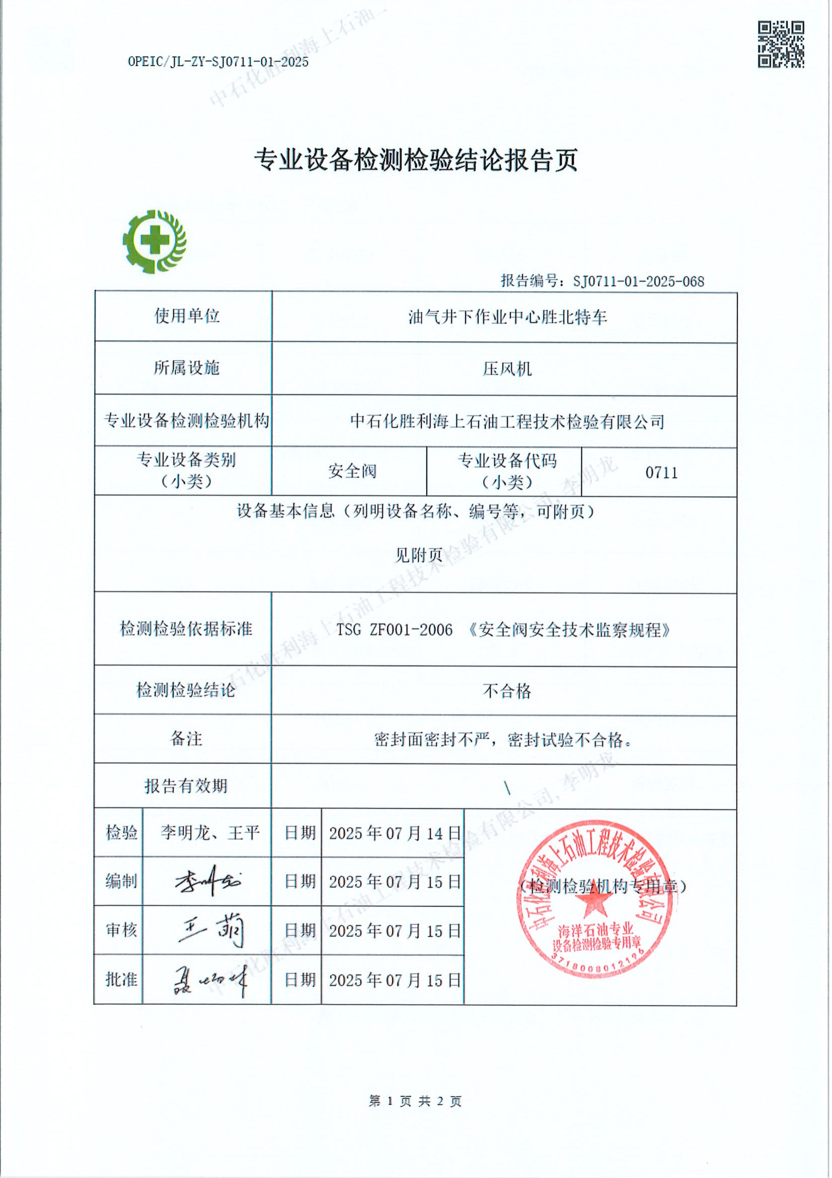 石化胜利海上石油工技术检验有限公司