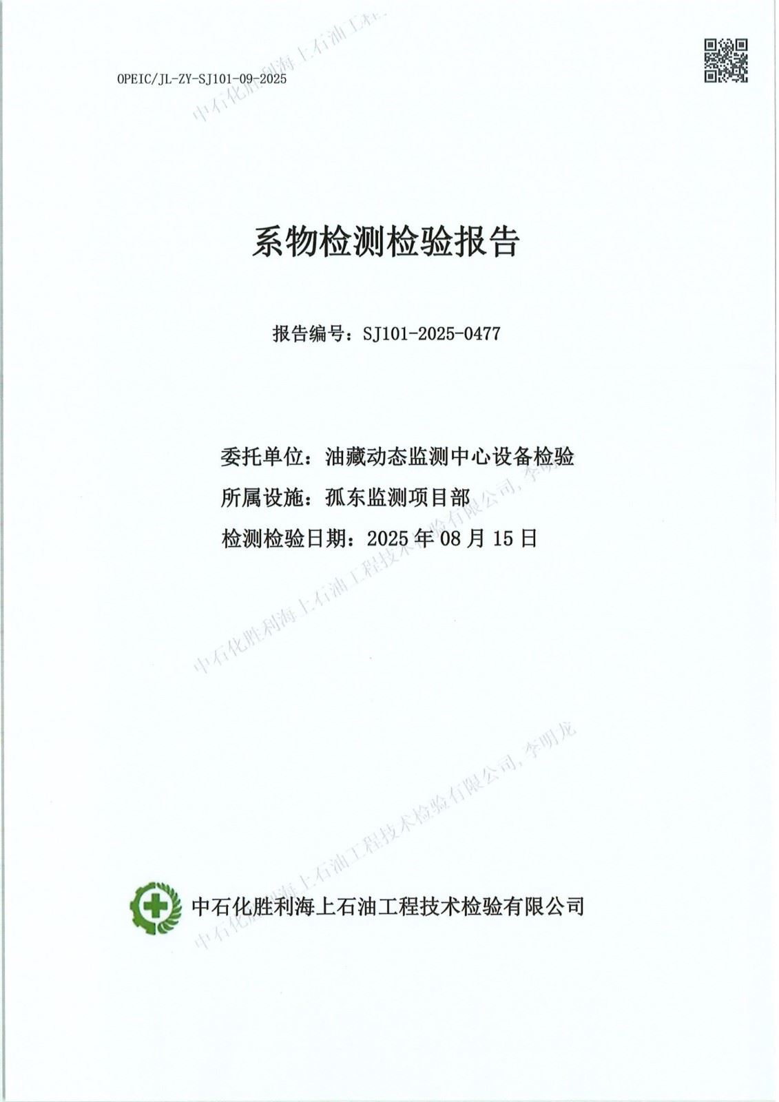 1、使用单位:油藏动态检测中心设备检验孤东检测项目部