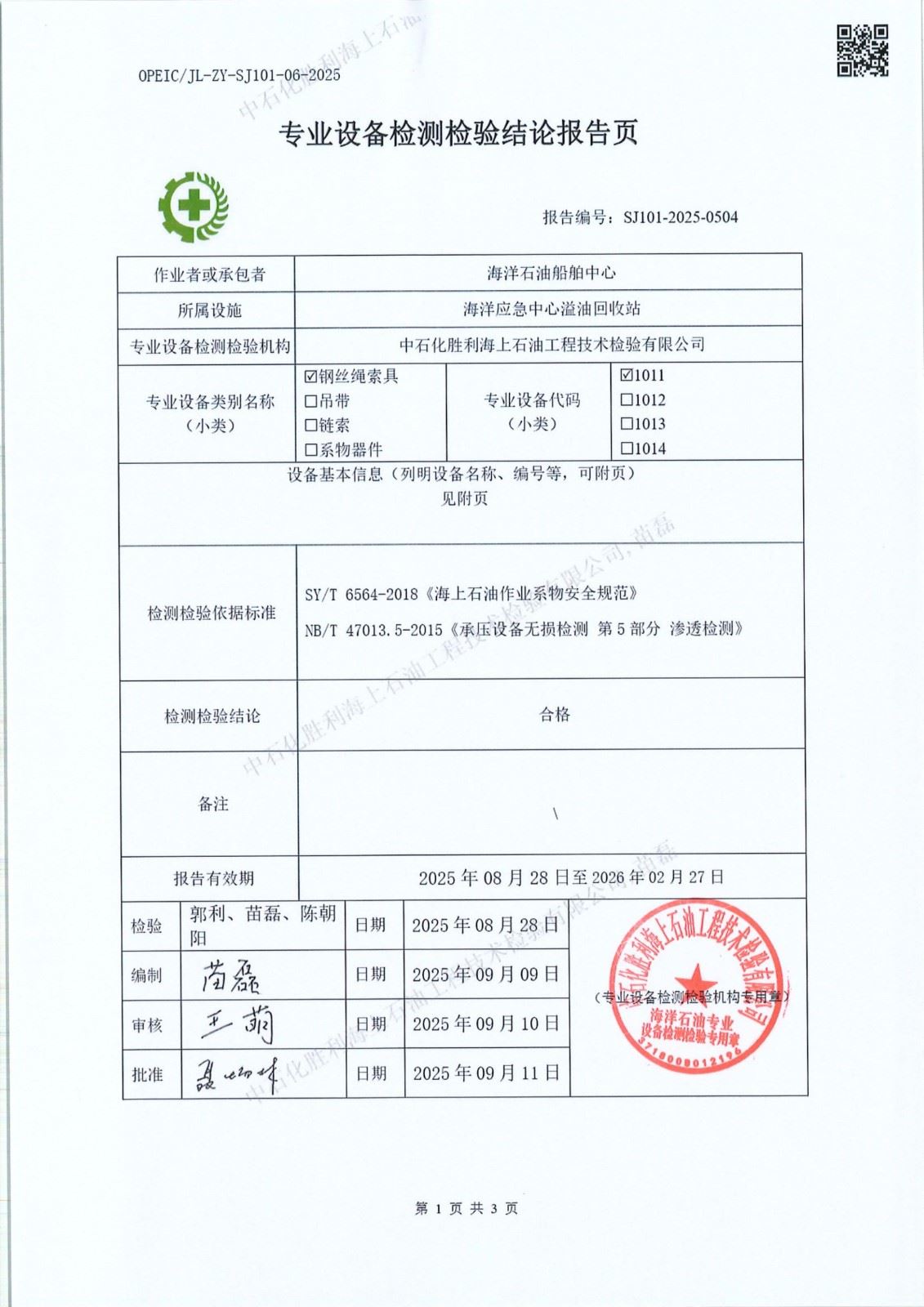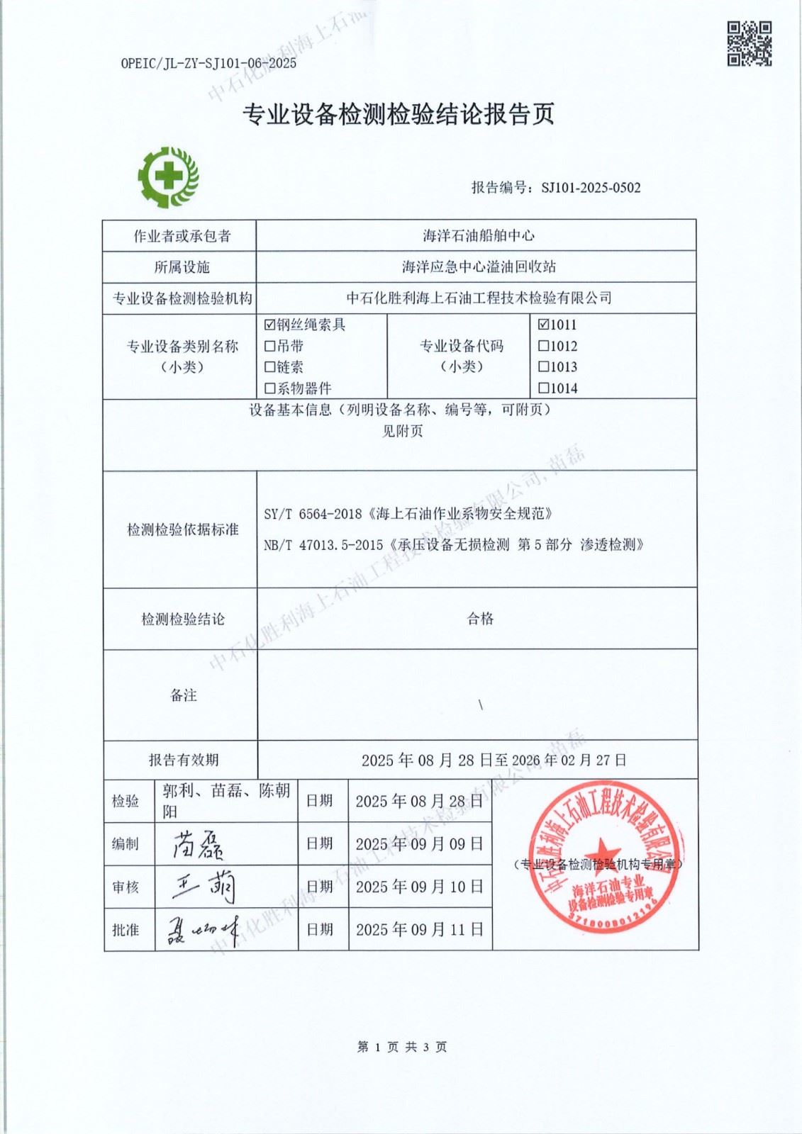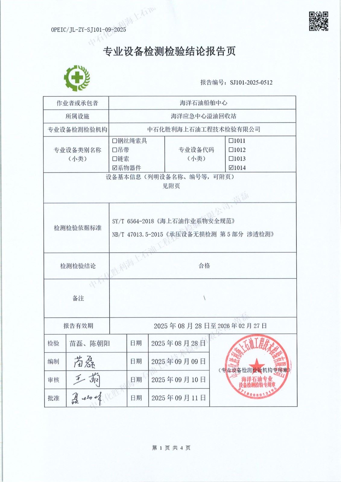 1、使用单位:海洋船舶中心海洋应急中心溢油回收站