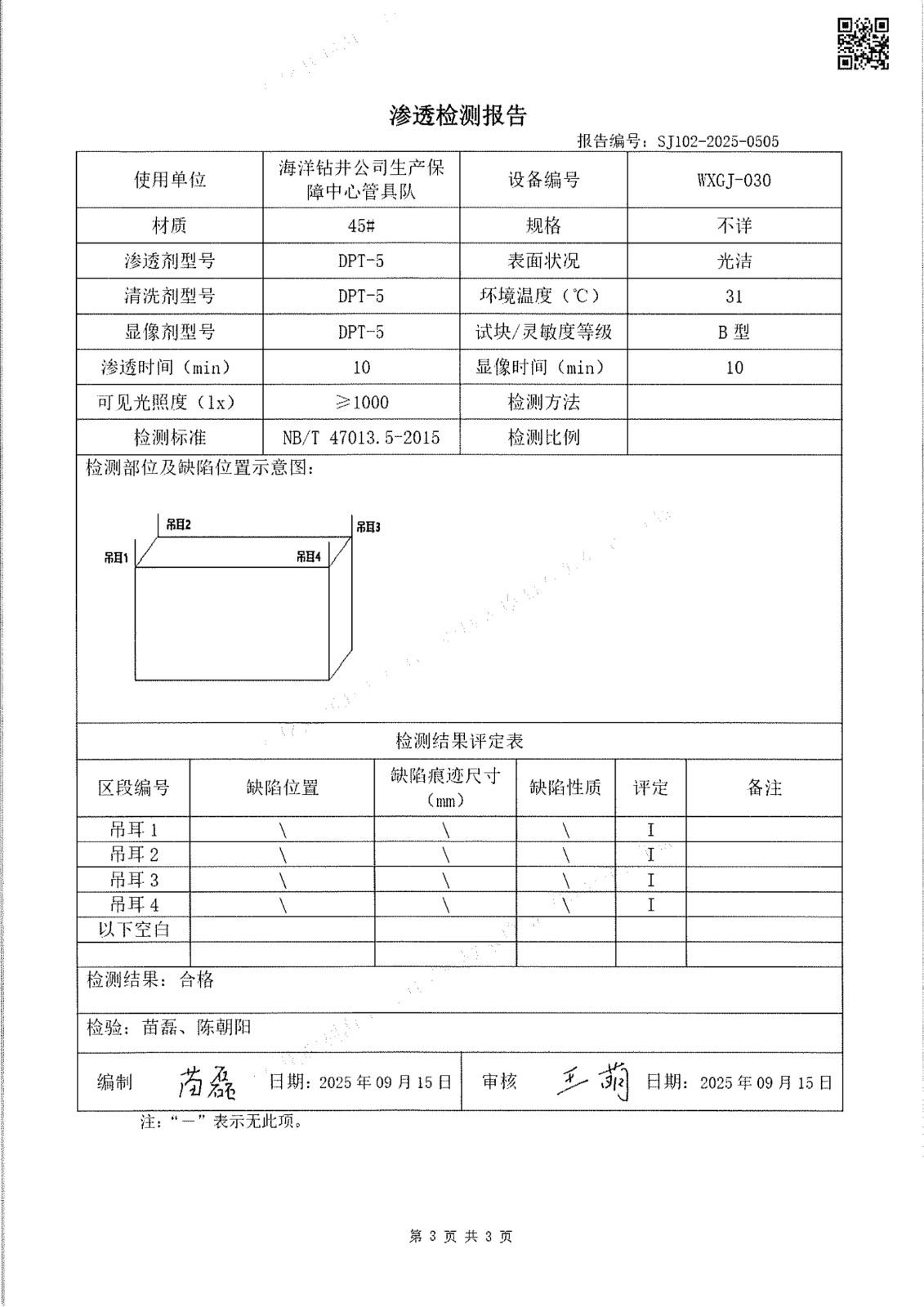 1、使用单位:海洋钻井公司生产保障中心管具队